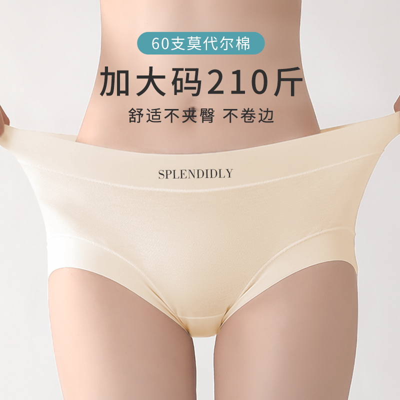 黛娴莫代尔聚乳酸60支内裤女大码透气200斤无痕中腰5A抗菌裆舒适