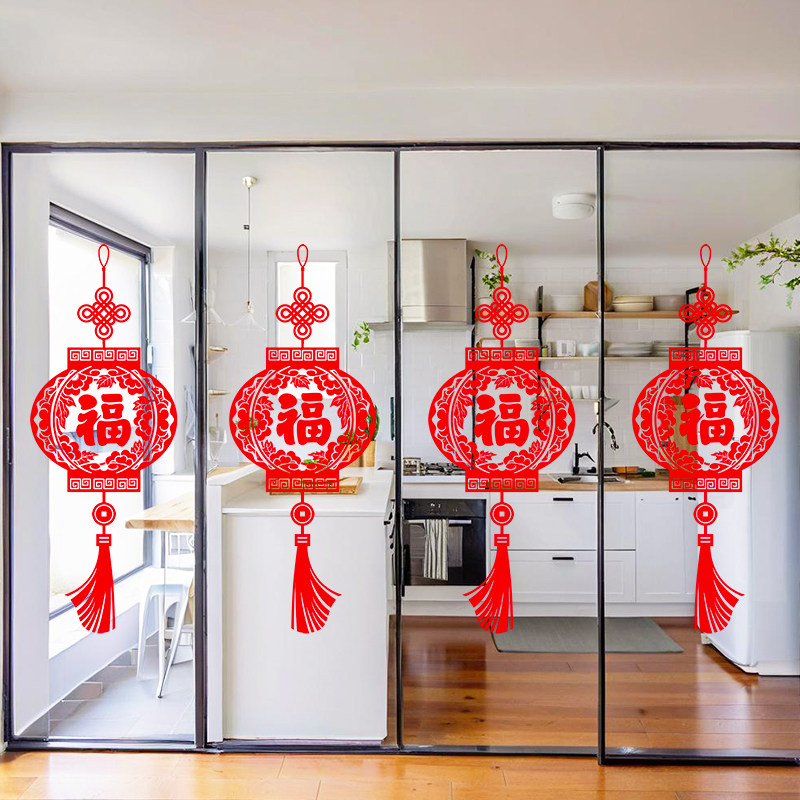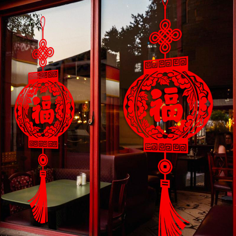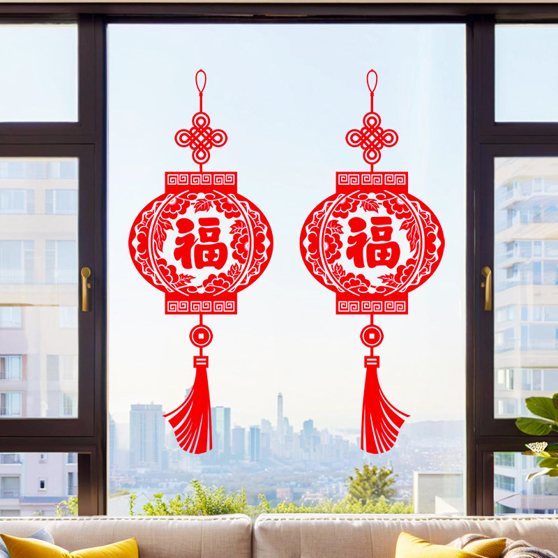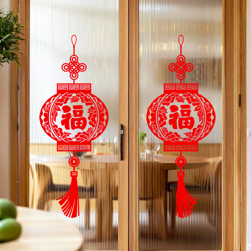 灯笼中国结一对静电无痕吸附福字贴2026元旦春节过年新年新款