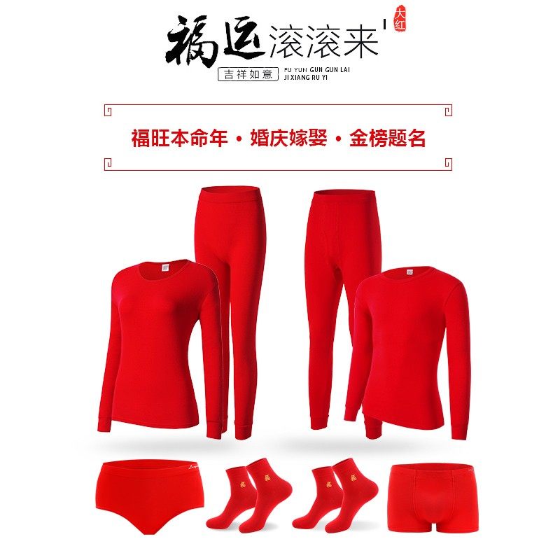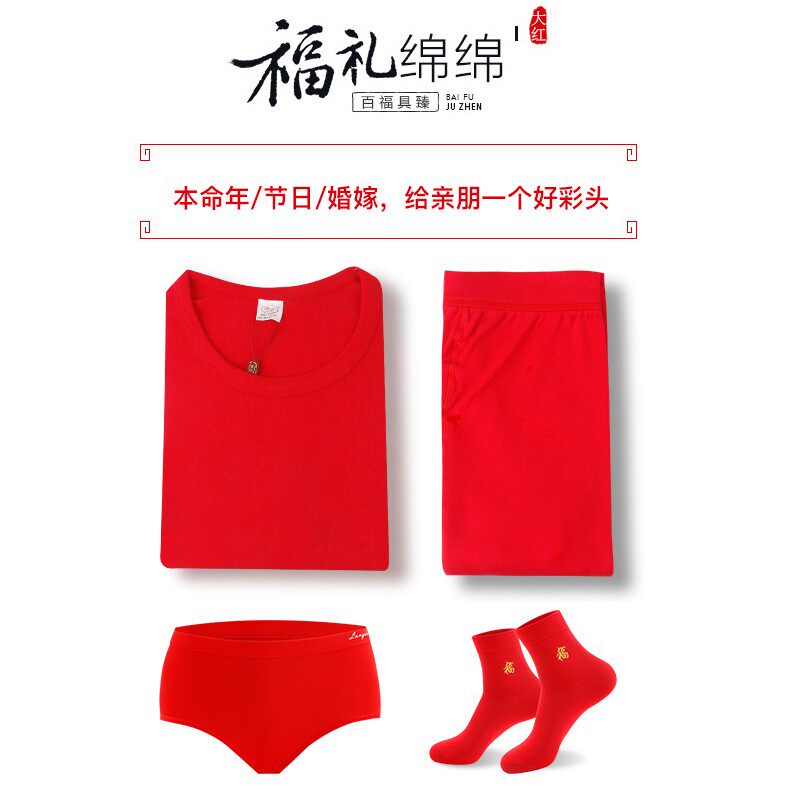 浪莎本命年加厚加绒保暖内衣套装男女结婚衣服红色秋衣秋裤属马年