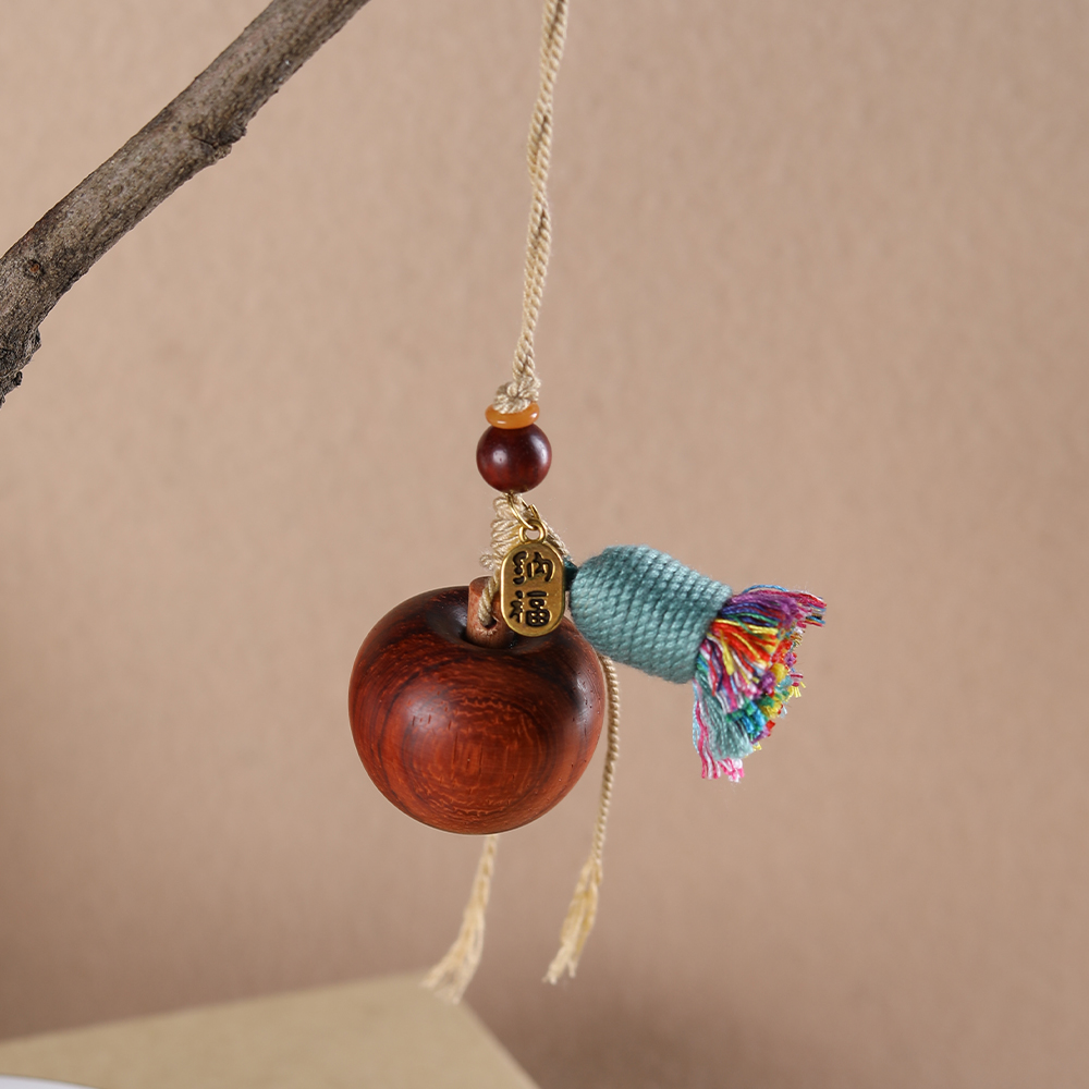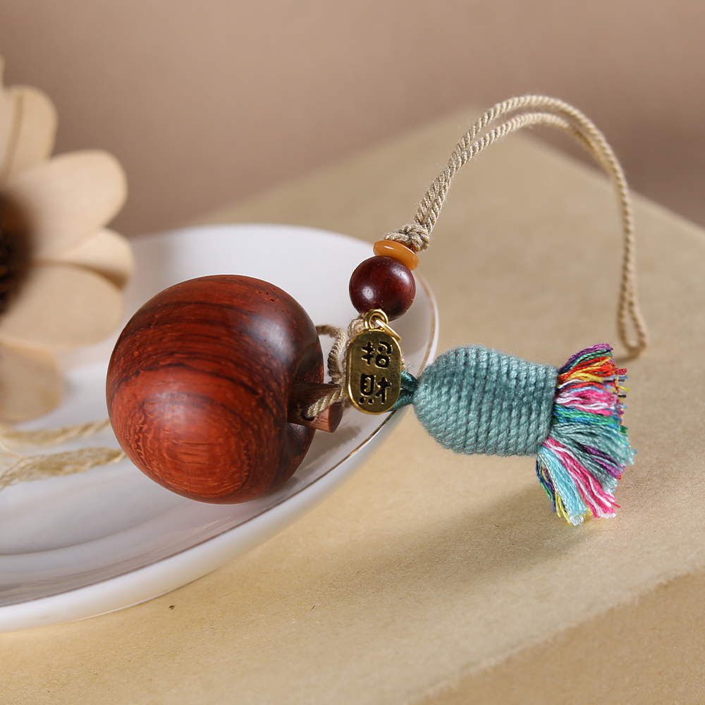 天然紫檀木苹果手机链挂绳平安果挂饰男女创意汽车钥匙扣挂绳饰品
