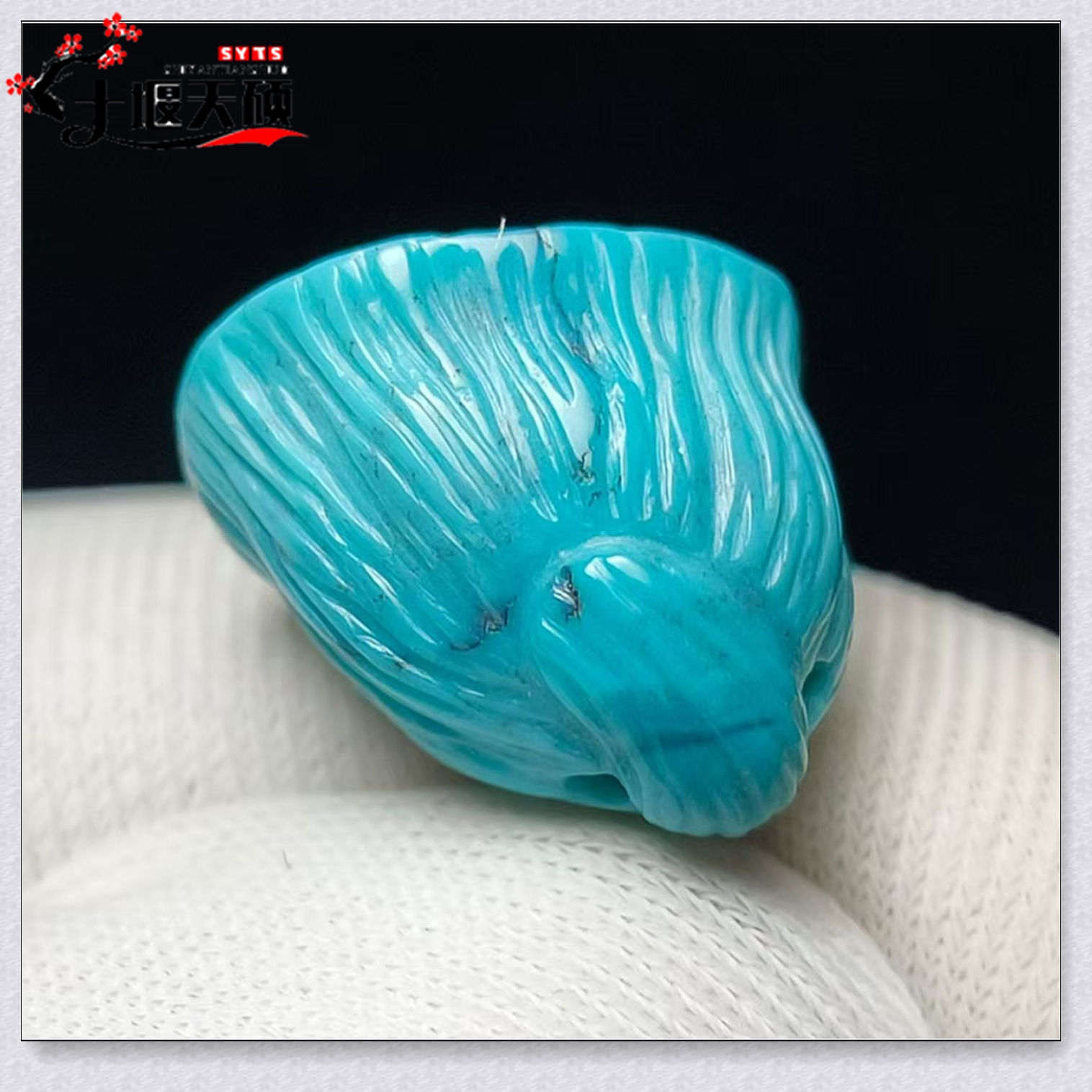 玉化料高瓷蓝天然原矿绿松石原石苏工雕刻莲蓬配饰保真无泡油吊坠