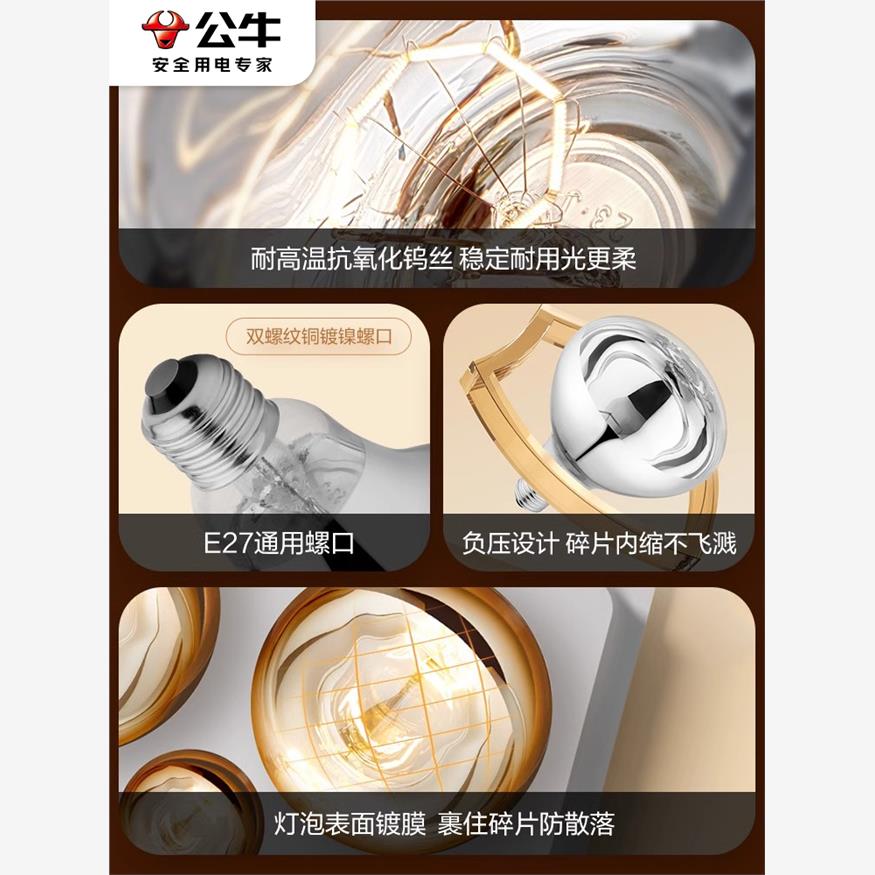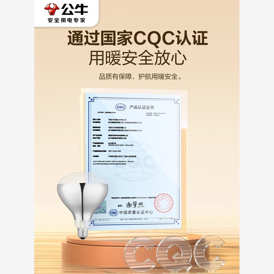 公牛浴霸灯泡取暖灯防水卫生间专用通用中间照明e27取暖球泡275w