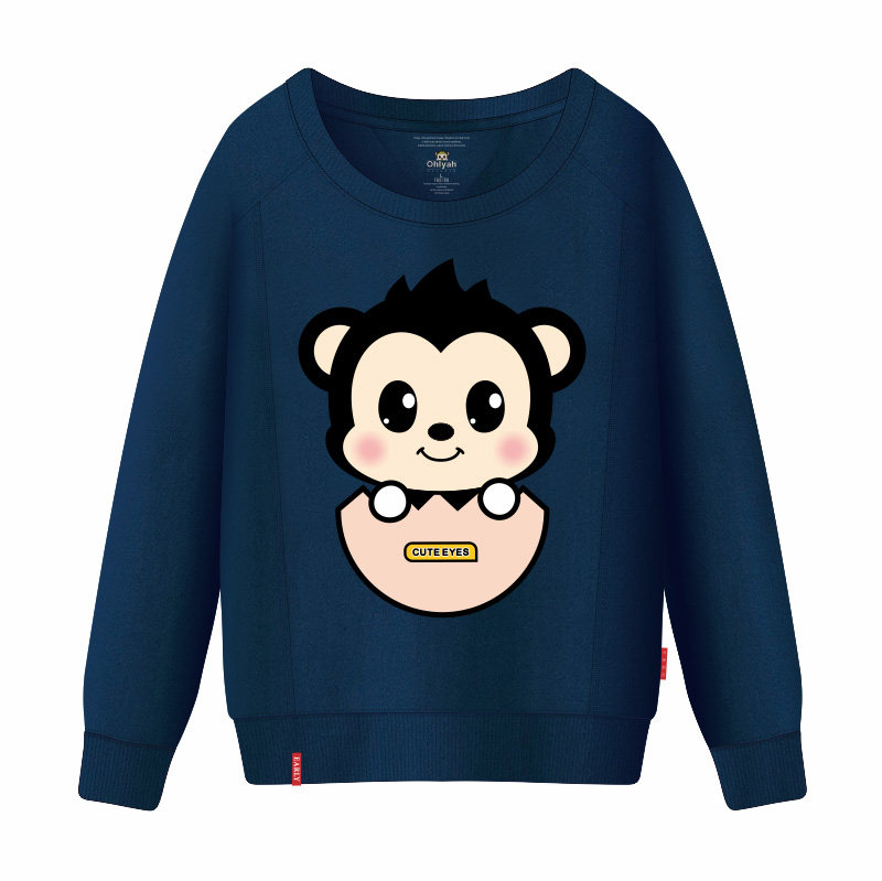 Ohlyah品牌韩国潮牌卡通猴子卫衣男女长袖纯棉印花圆领学生打底衫