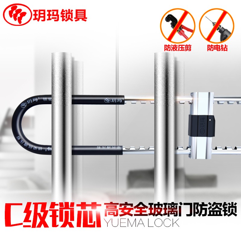 玥玛C级玻璃门锁双门防盗锁u型锁插锁推拉门店面锁商铺锁挂锁长锁