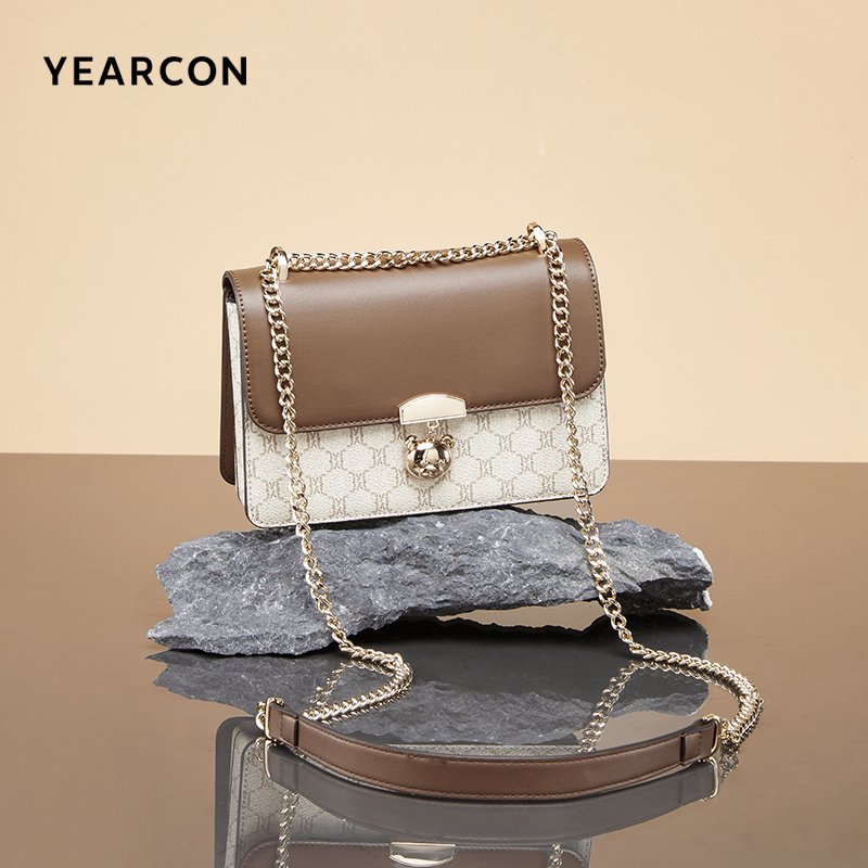意尔康包包斜挎包2025新款小方包复古印花链条包百搭通勤女包单肩