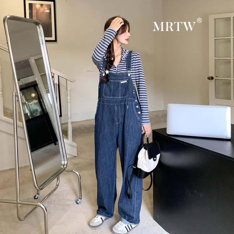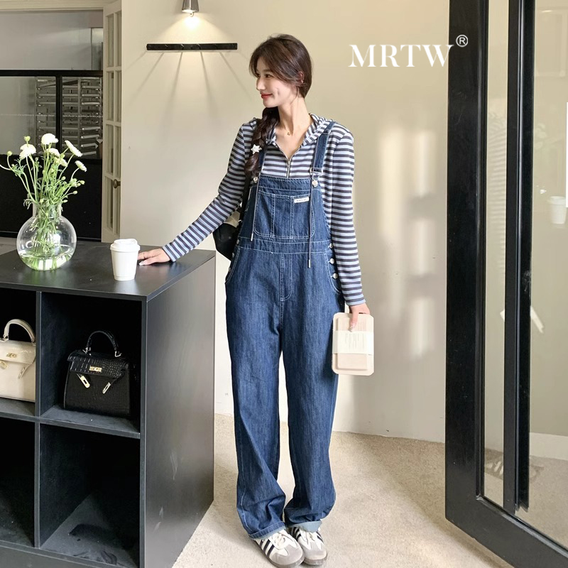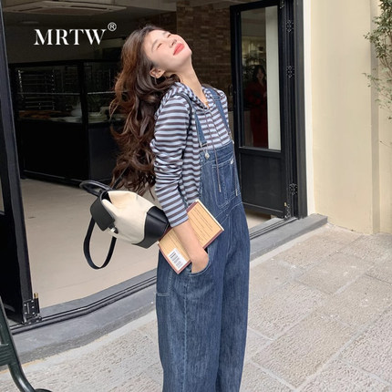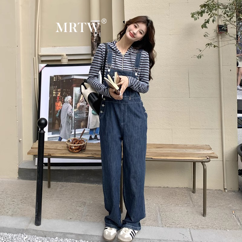 港风复古工装牛仔背带裤套装女春秋2024新款夏宽松连体长裤两件套