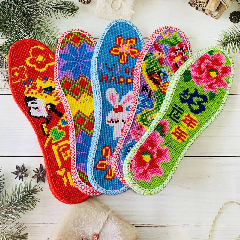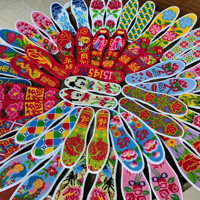 加厚新款绣好的十字绣成品鞋垫纯手工不褪色棉布绣花防臭透气吸汗
