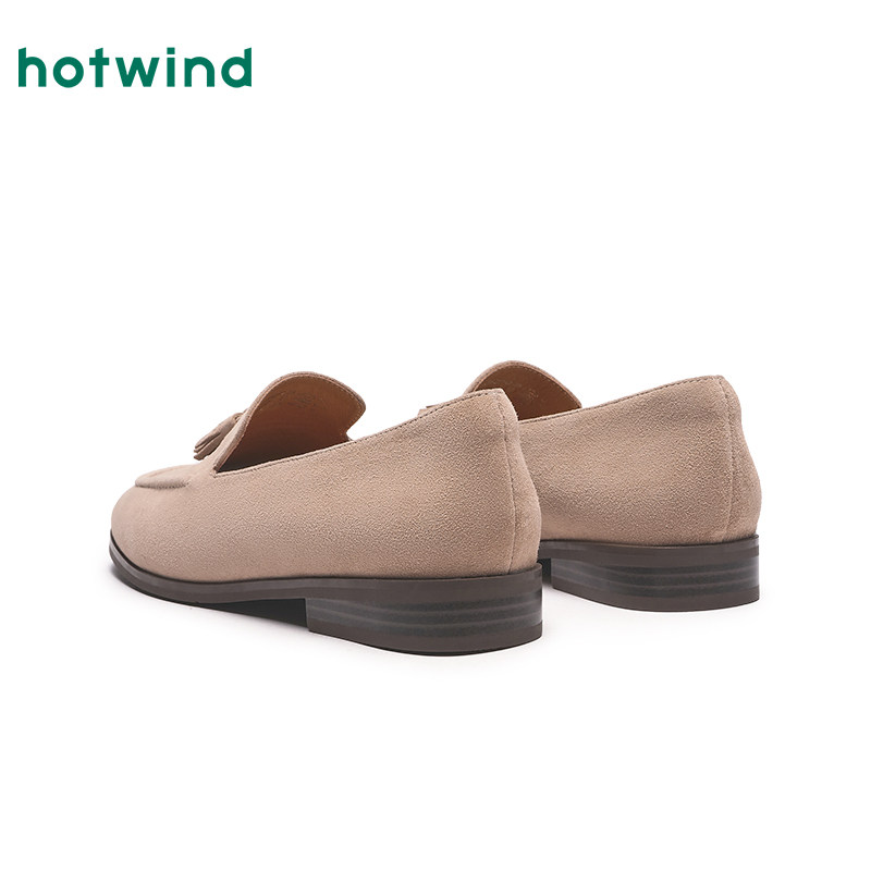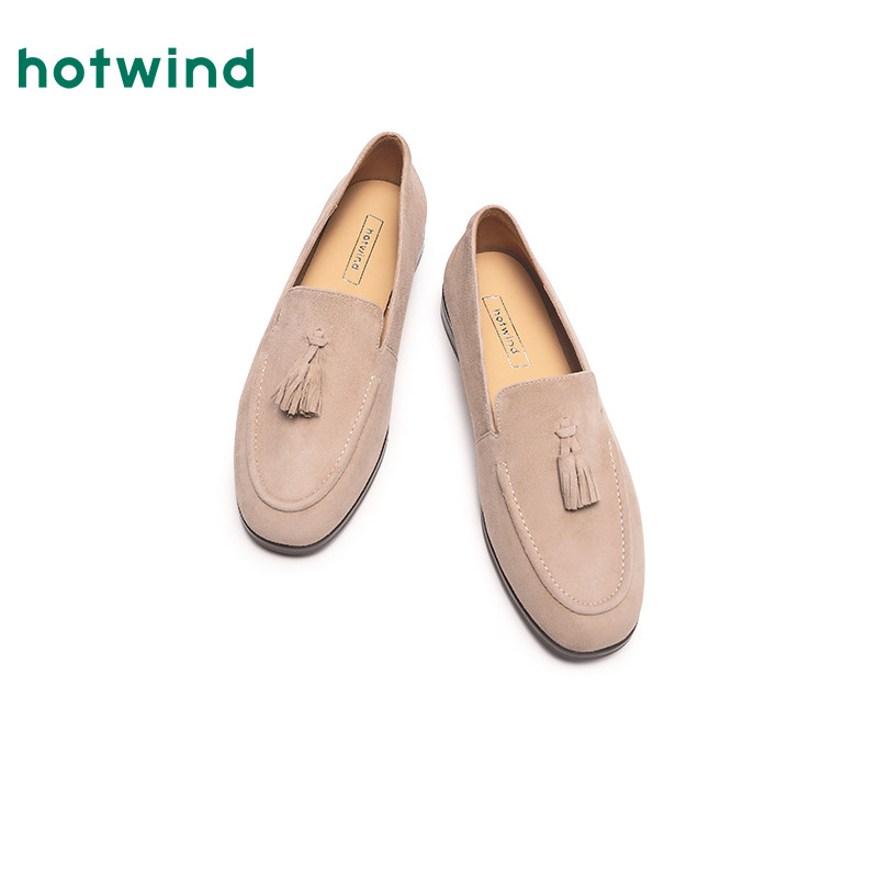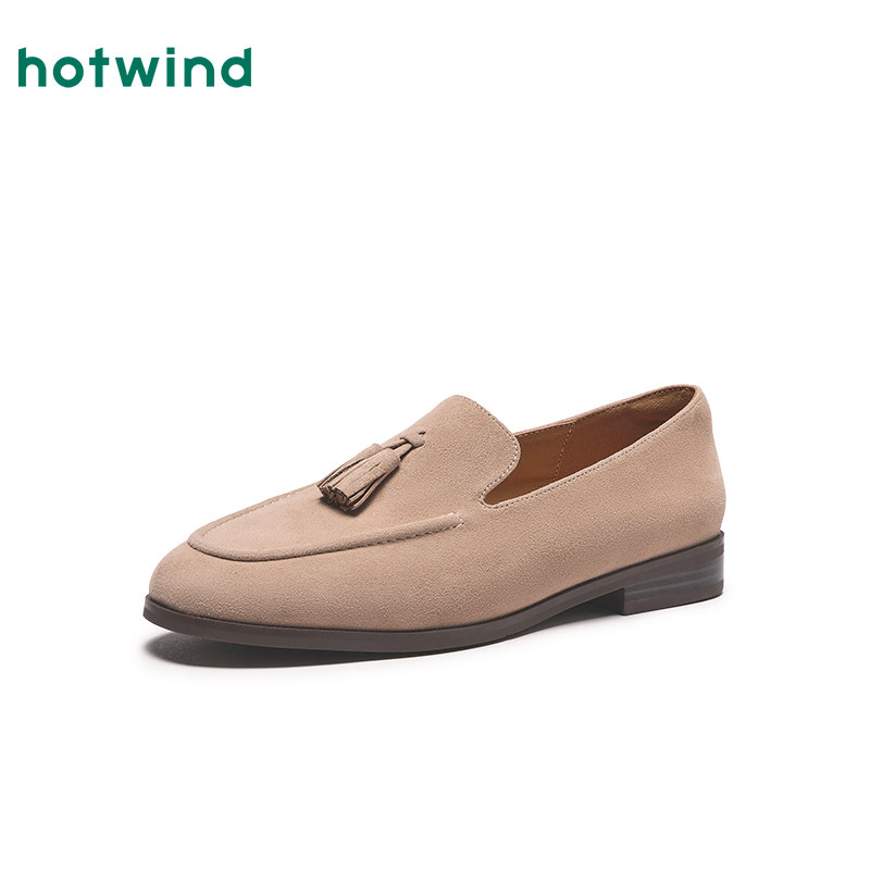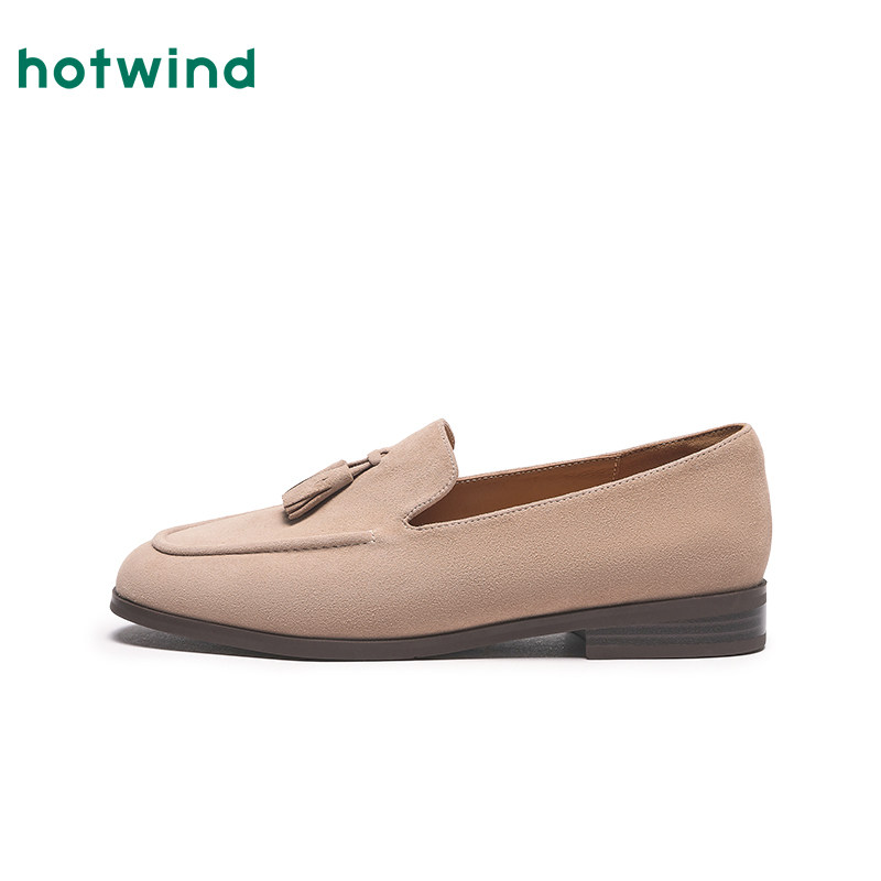 热风复古乐福鞋女鞋2025年秋季新款杏色通勤时尚单鞋平底豆豆鞋