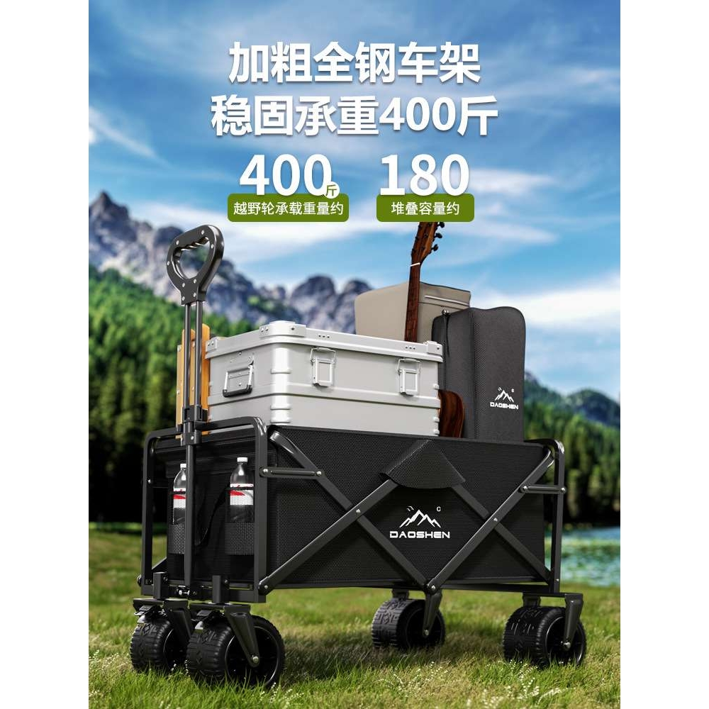 户外露营手推车大容量营地车野营可折叠野餐轻便旅行小拖车快递车