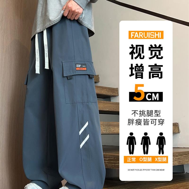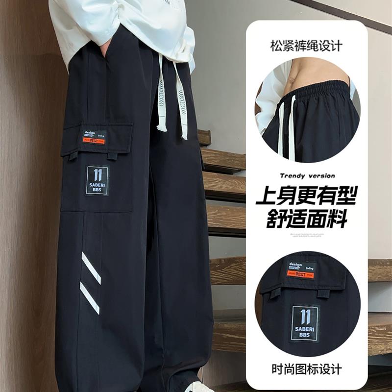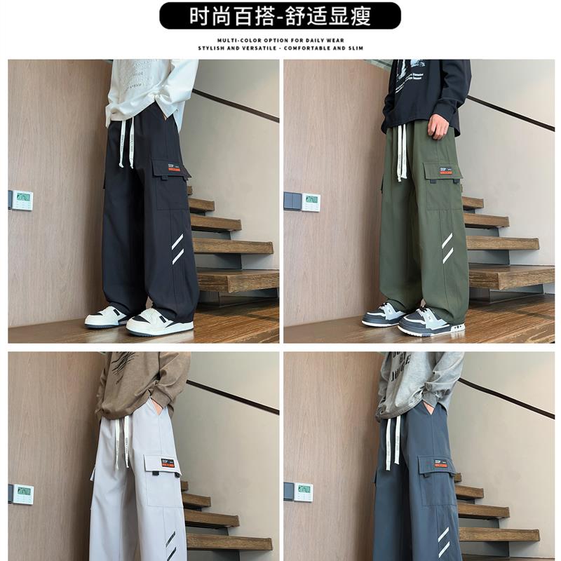 工装裤男秋季潮流宽松直筒青少年裤子男生春秋运动裤男款休闲长裤