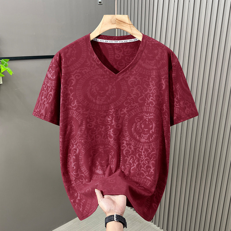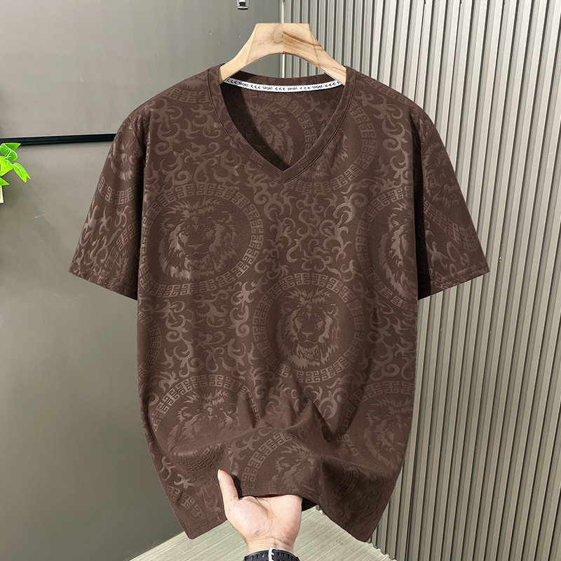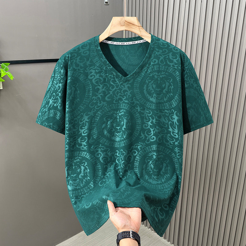 秋冬季简约德绒V领短袖t恤男士加肥加大码胖子圆领内穿半袖打底衫