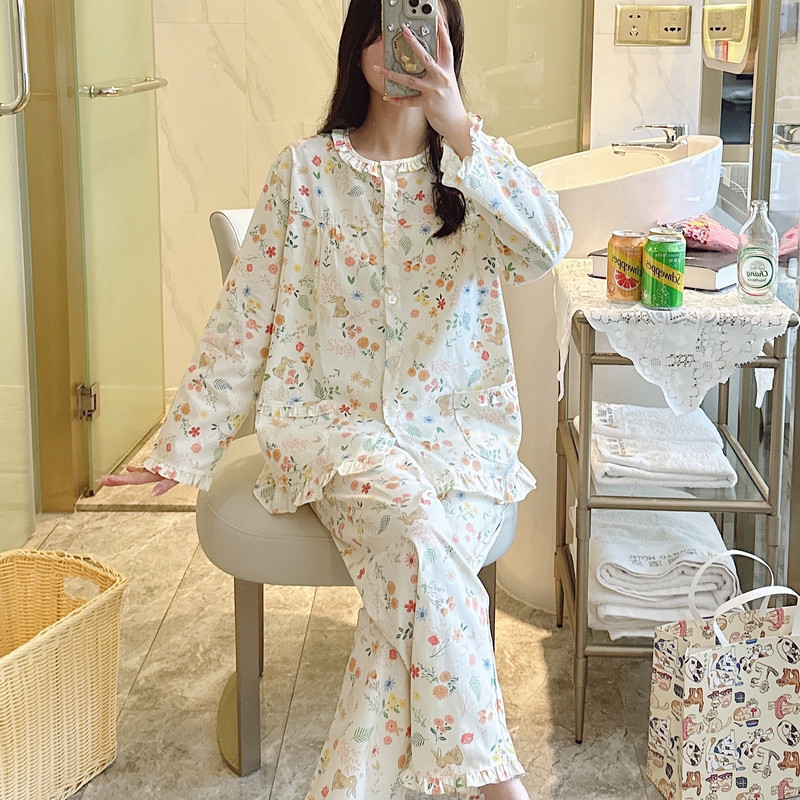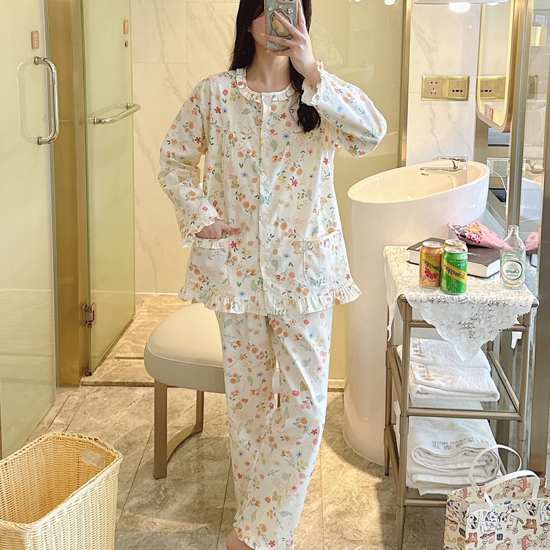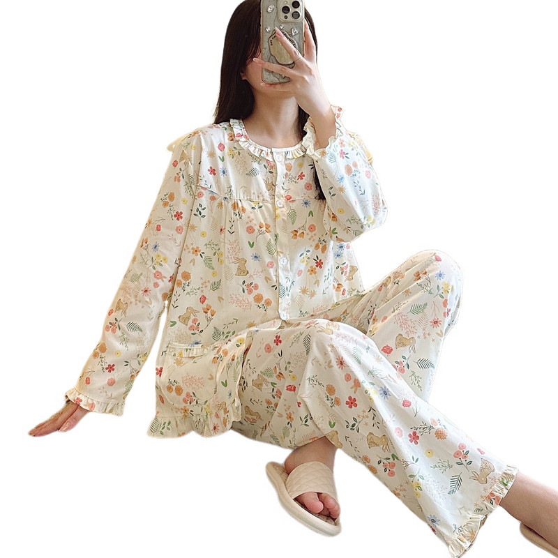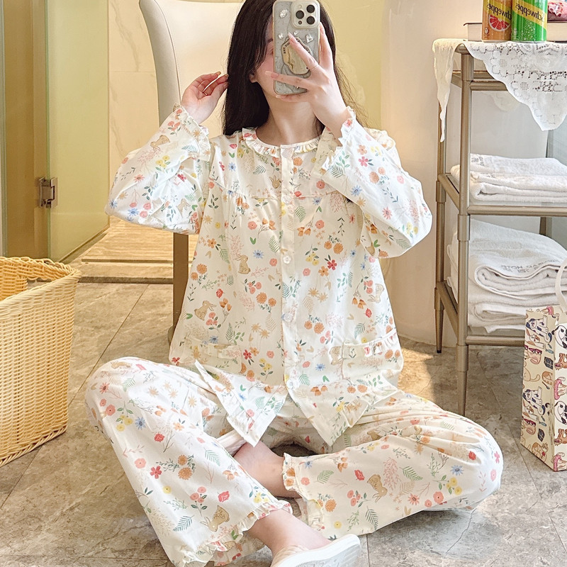 纯棉睡衣女春秋长袖夏季薄款全棉家居服棉布春夏套装大码可爱网红