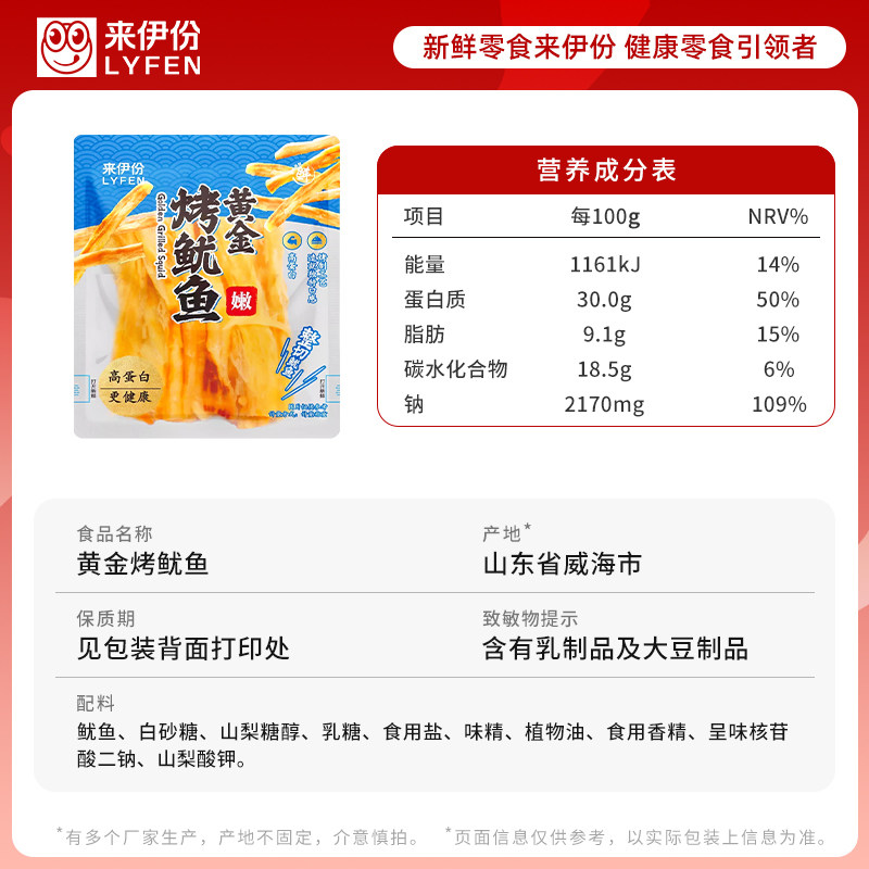 来伊份黄金烤鱿鱼丝500g整切即食海味高蛋白手撕休闲零食来一份