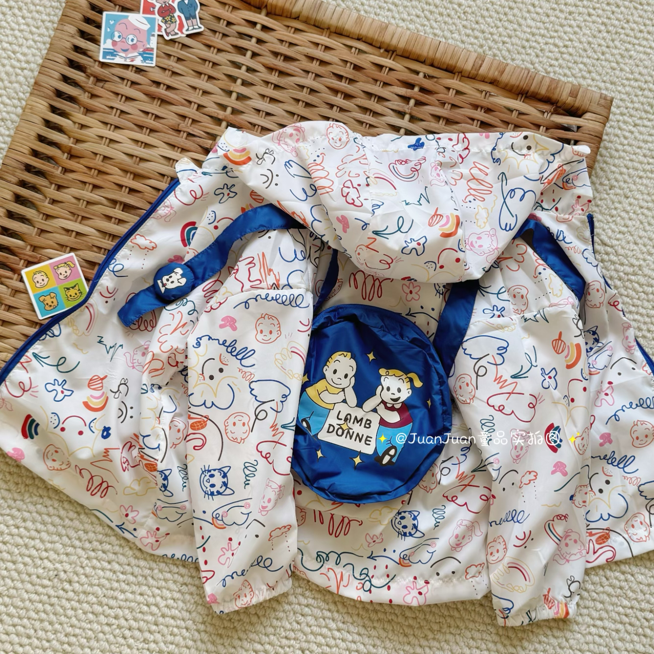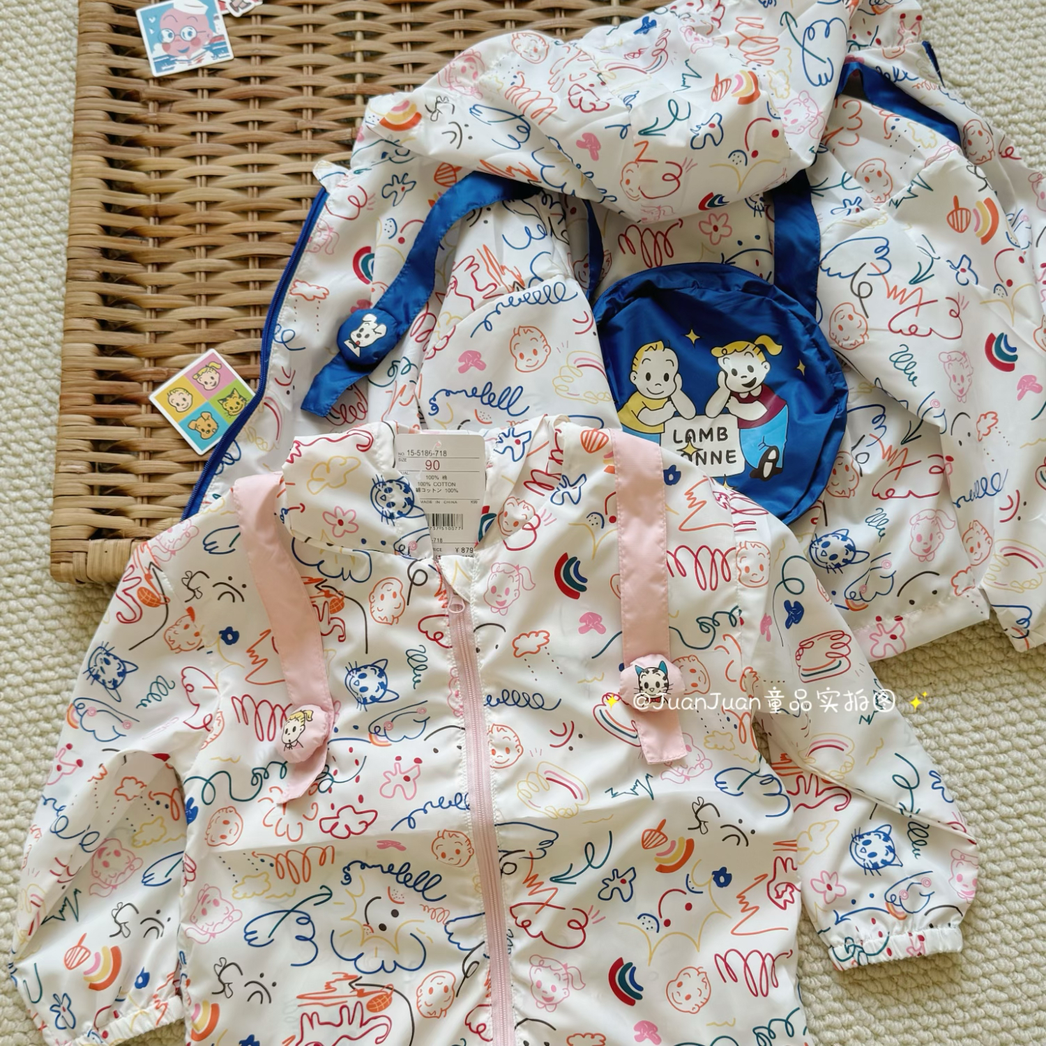 超轻!日系原田卡通涂鸦防晒衣春夏薄款男女童背包可爱连帽皮肤衣