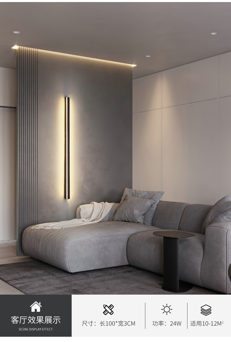 简约现代格栅灯客厅电视背景墙壁灯卧室床头灯一字长条形极简壁灯