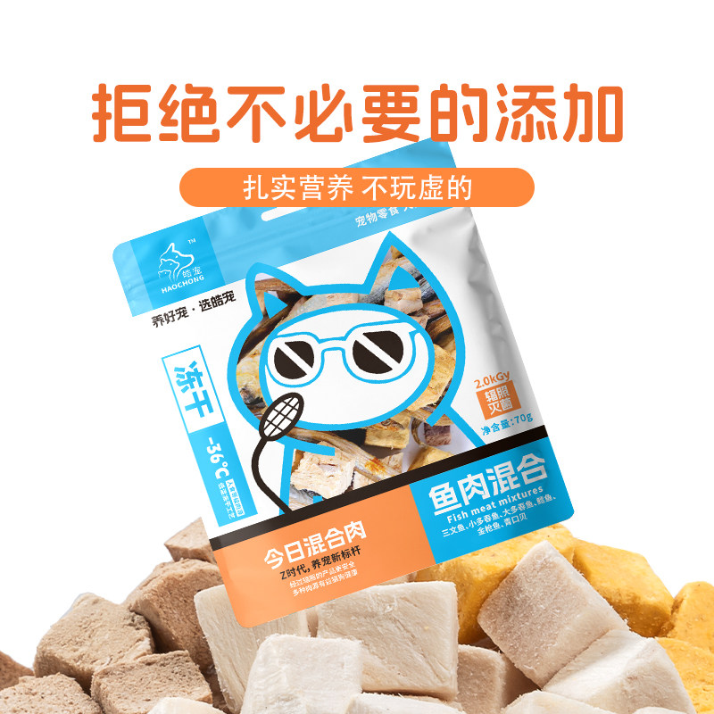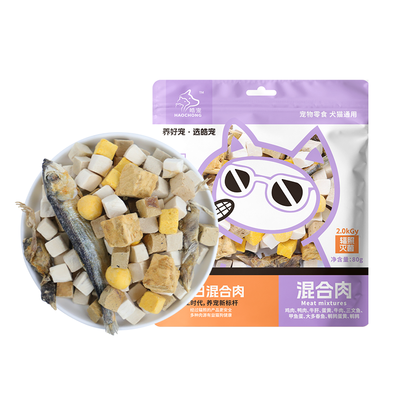 皓宠袋装冻干猫狗通用4种口味多肉源有益猫狗健康冻干宠物零食