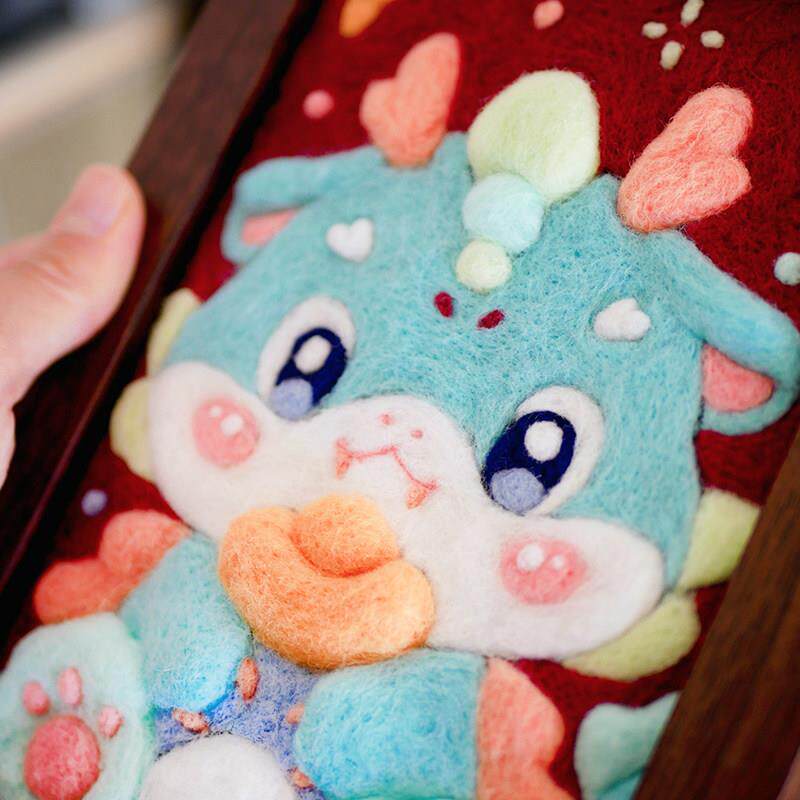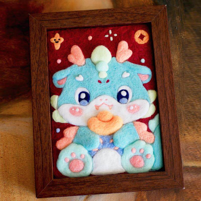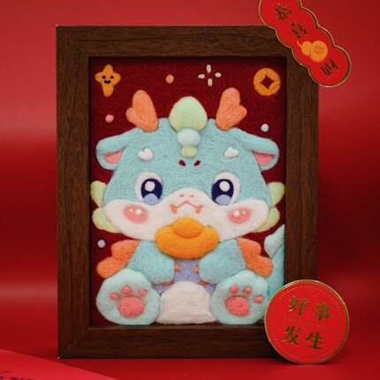 数绵羊羊毛毡羊毛毡diy手工材料包 龙年小青龙相框画 画男友闺蜜