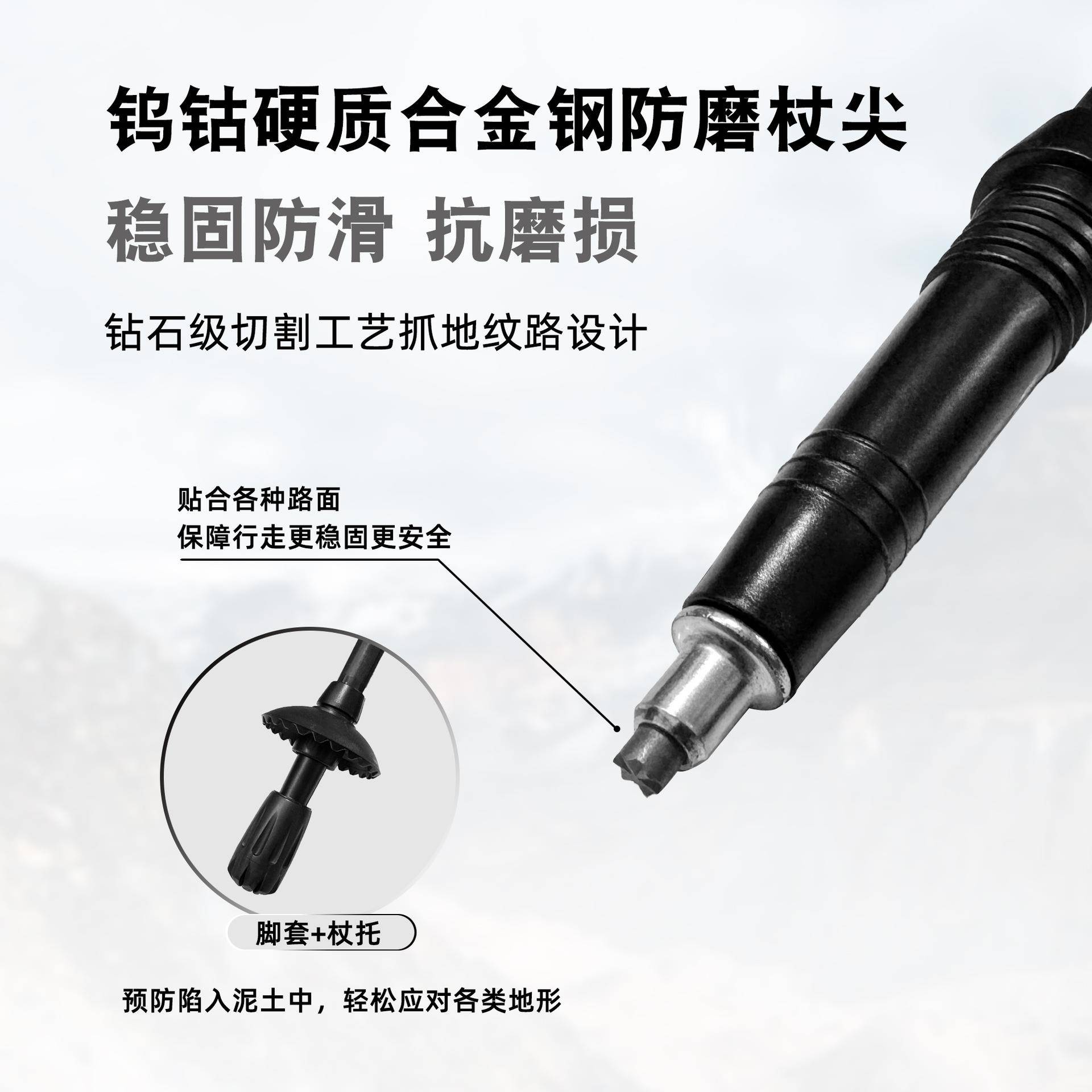 户外纽卡索折叠登山杖碳纤维五节伸缩杖徒步手杖登山轻量NV08