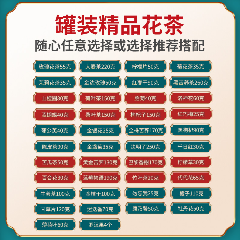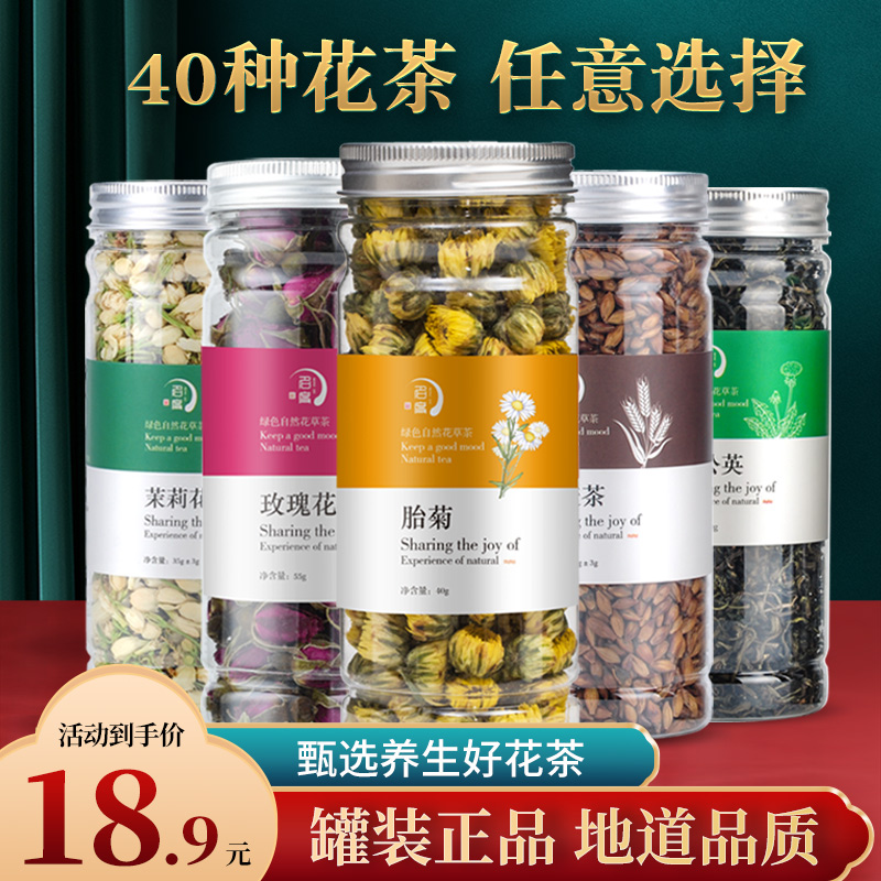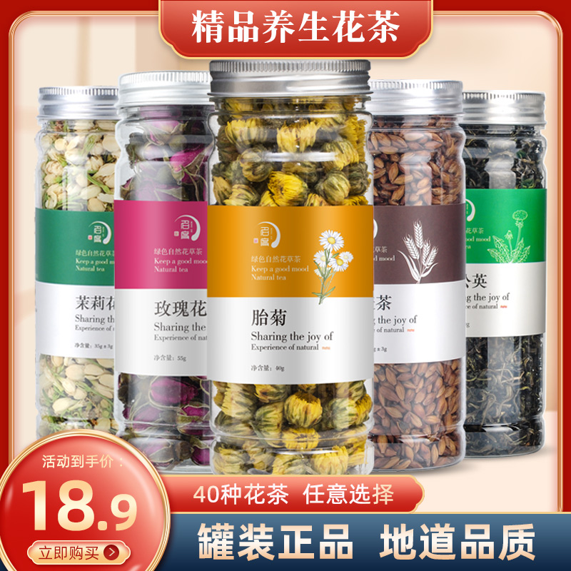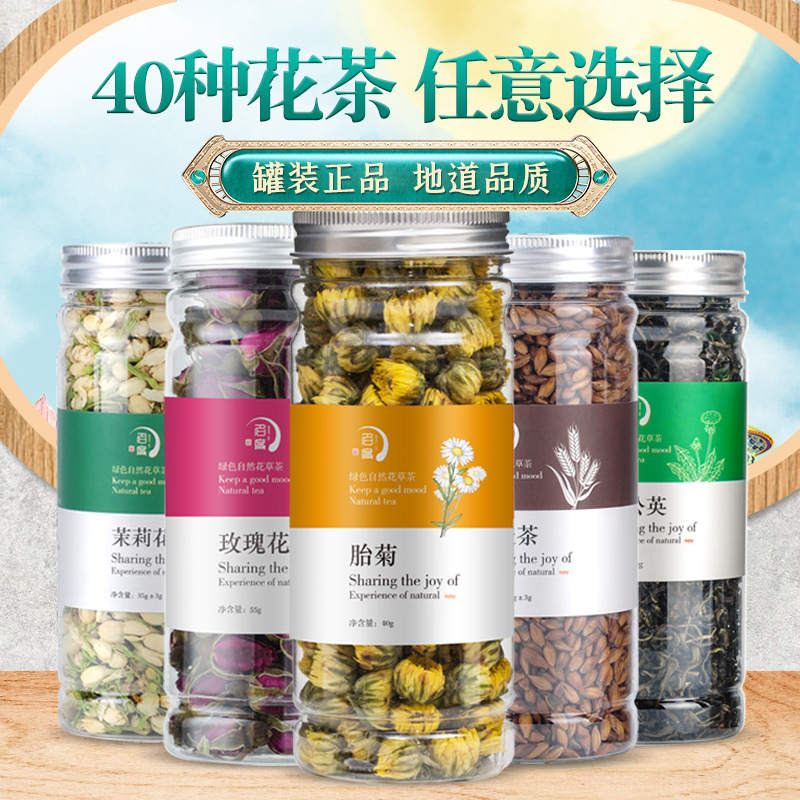罐装玫瑰花茶胎菊花荷叶蒲公英茉莉花干柠檬片大麦养生茶组合花茶