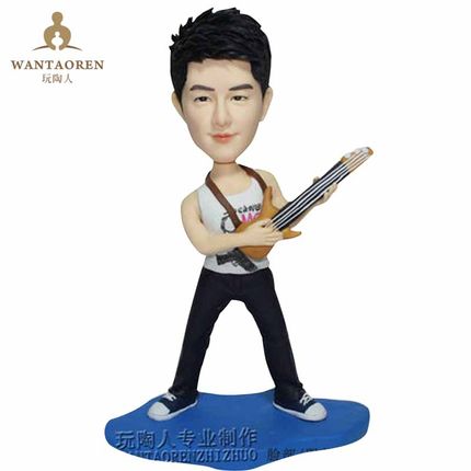 弹吉他造型-Q版真人陶偶定制 结婚玩偶 个性人偶 软陶公仔定做