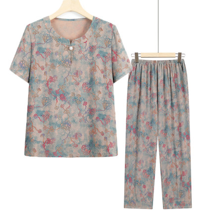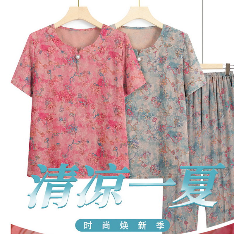 奶奶夏装套装中老年女装妈妈短袖两件套60岁70老太太夏季宽松服装