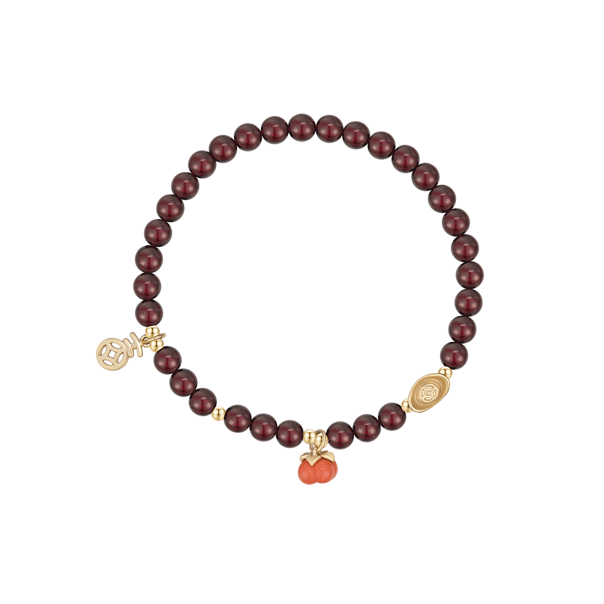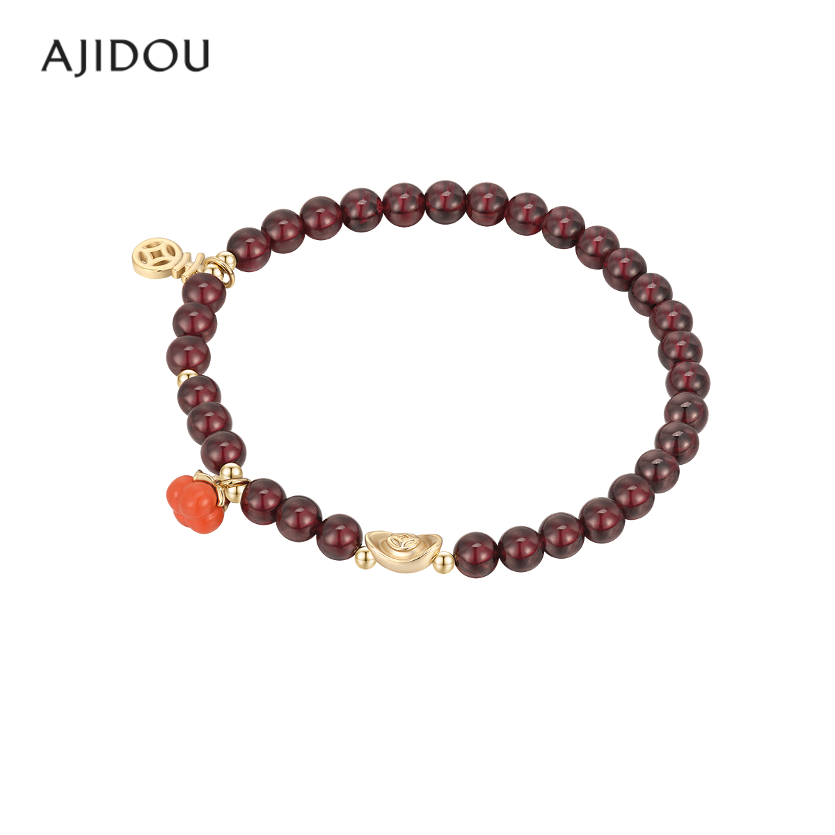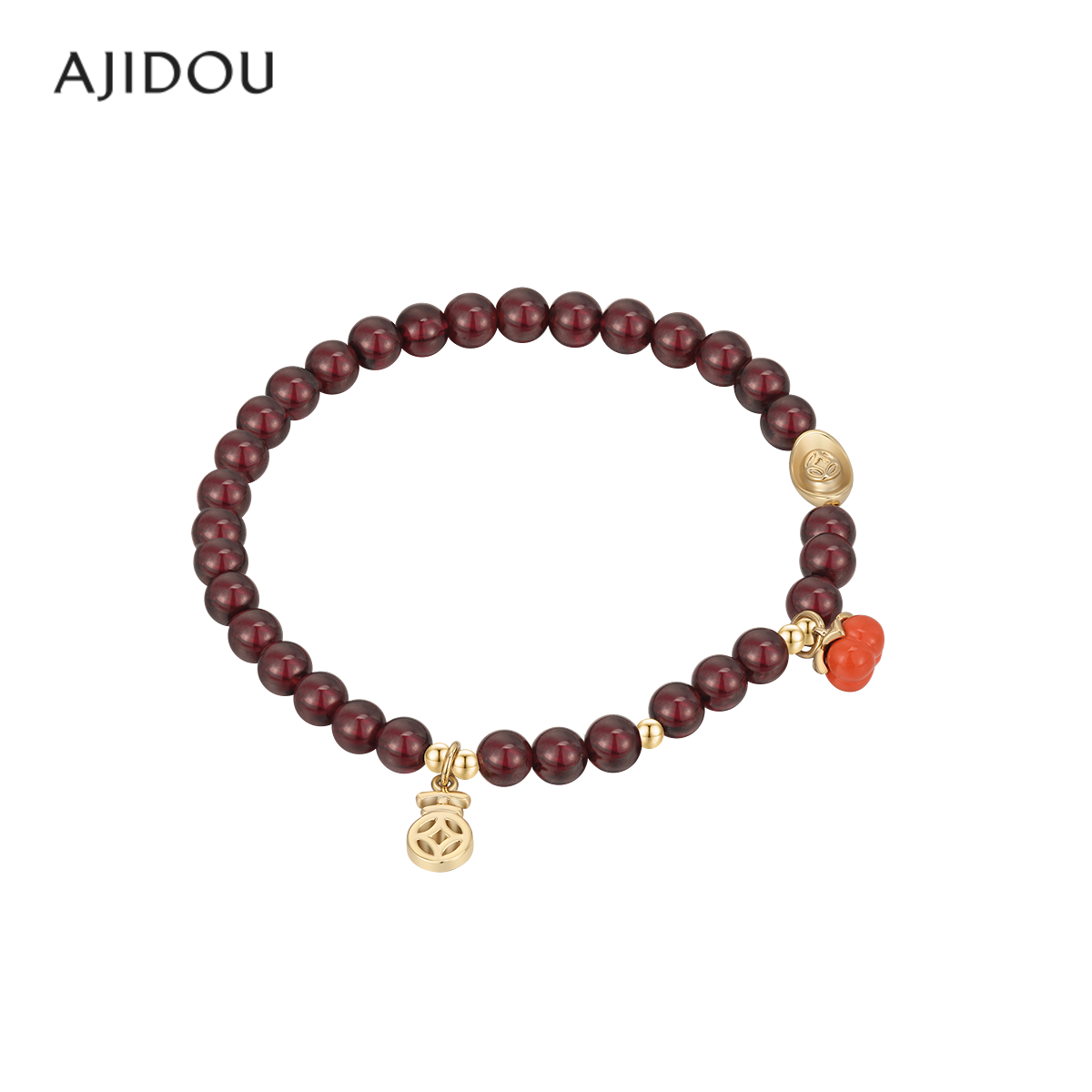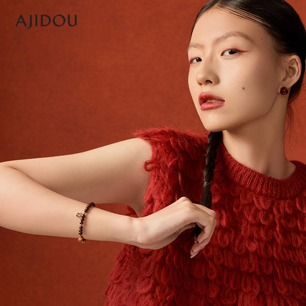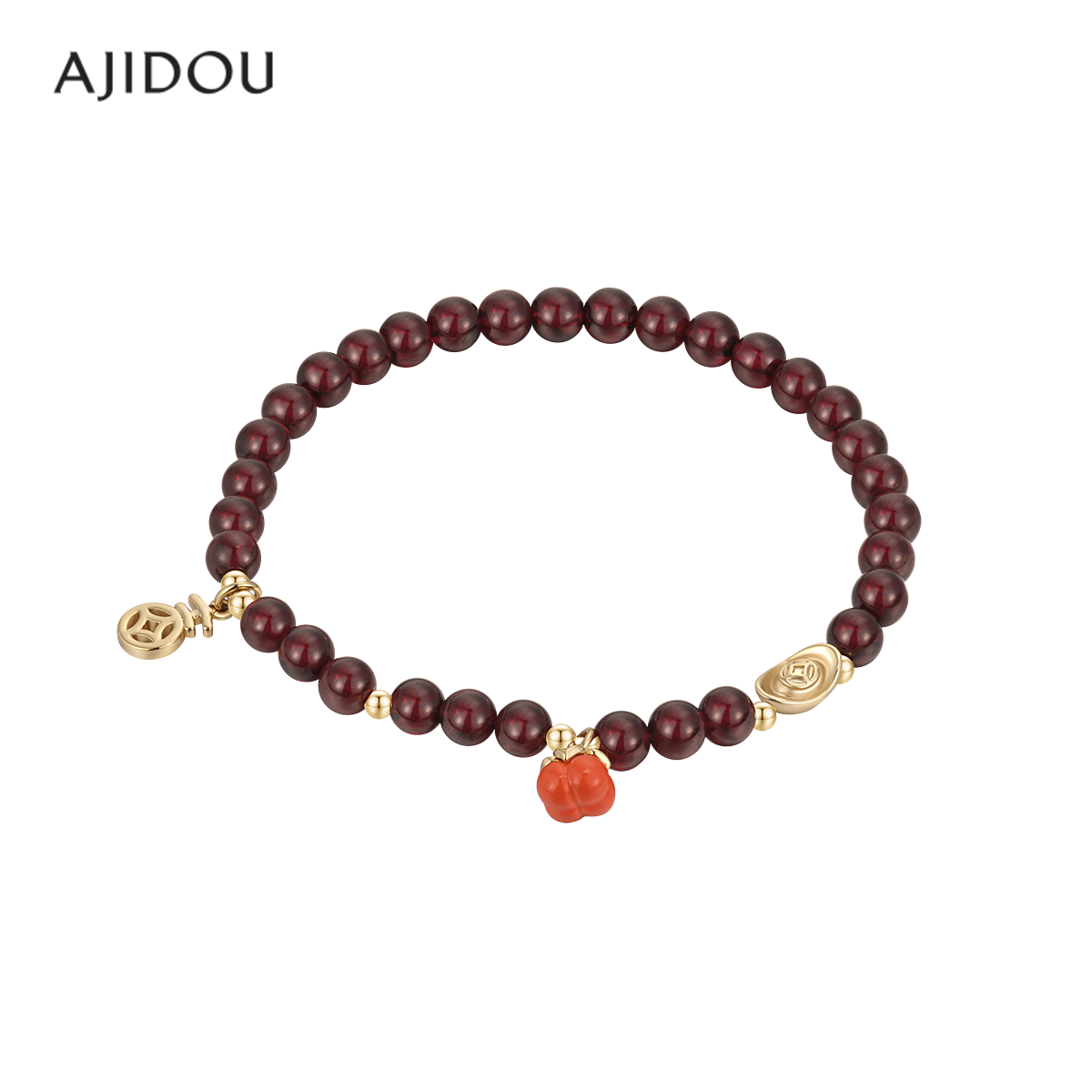 AJIDOU阿吉豆手链女中式国风石榴石款柿柿如意串珠手串手环