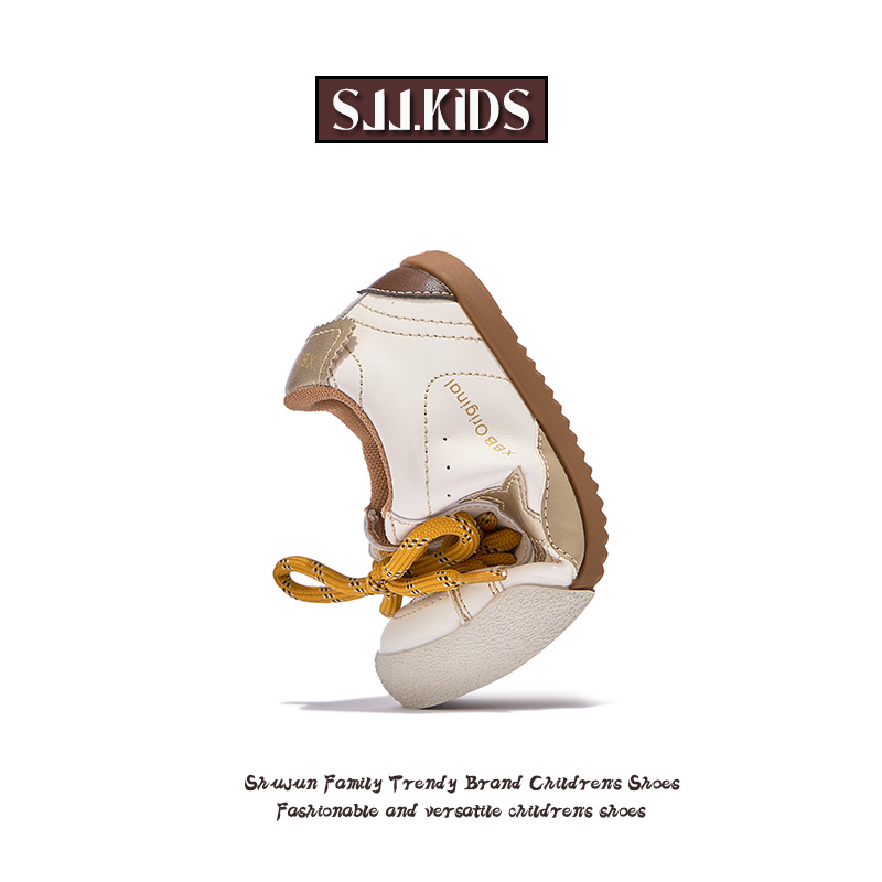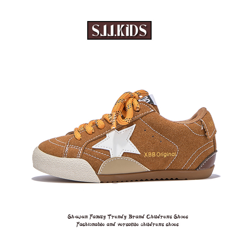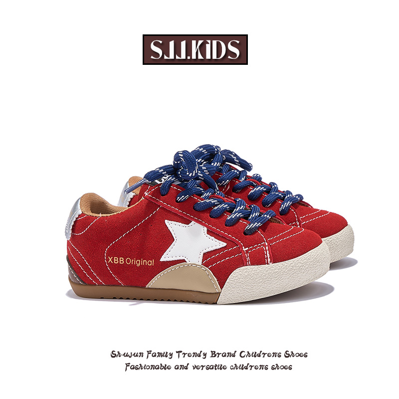 儿童板鞋真皮2025新款春秋季复古女童星星鞋运动鞋软底男童德训鞋
