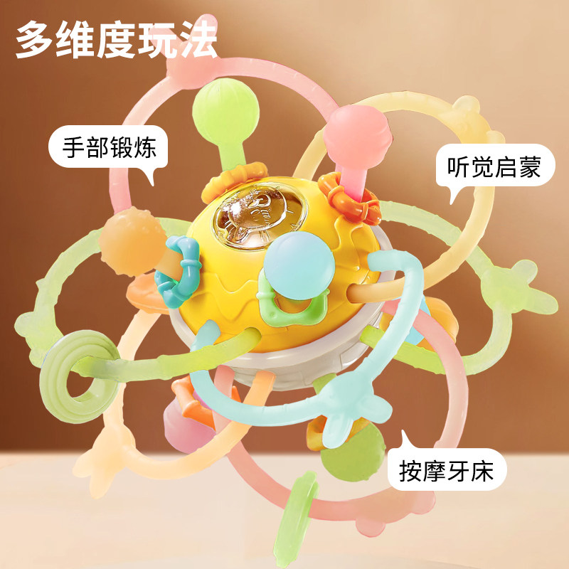曼哈顿手抓球婴儿硅胶可咬牙胶益智宝宝玩具3到6个月握磨牙0一1岁