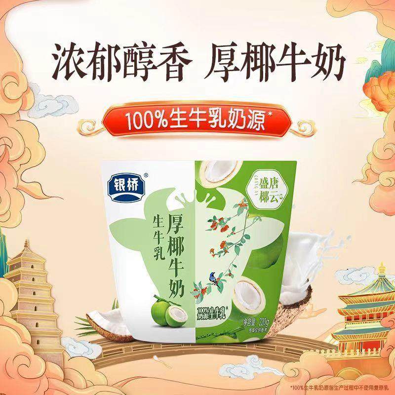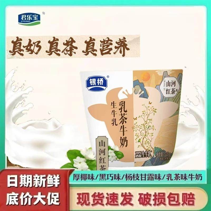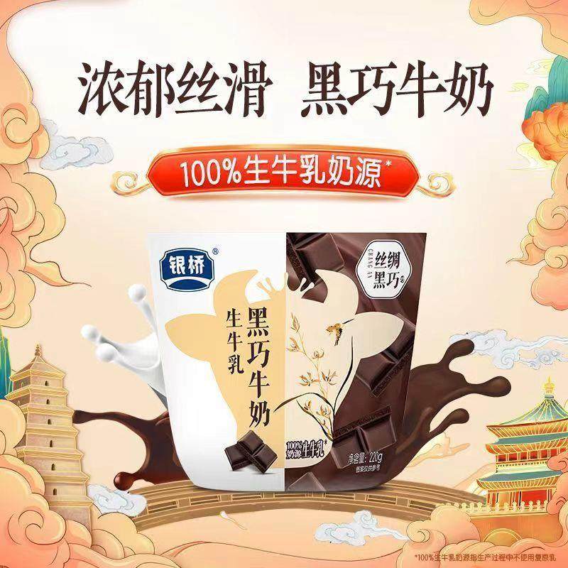 新货君乐宝银桥小牛角包黑巧杨枝甘露香蕉厚椰味牛奶220克袋装早