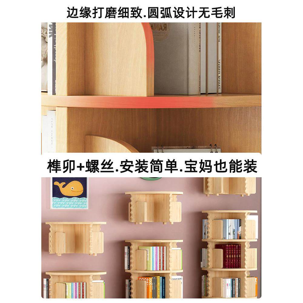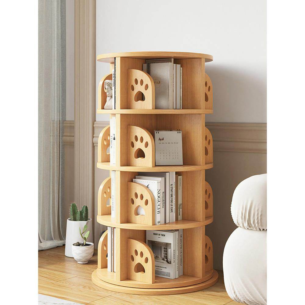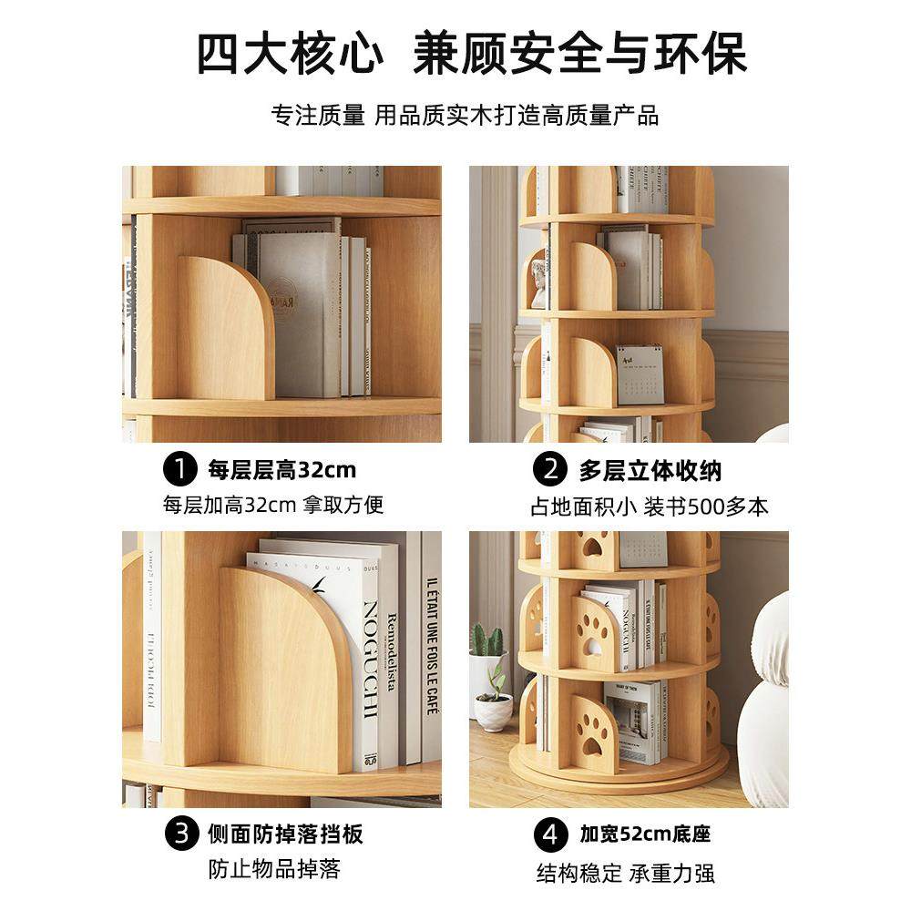 实木旋转书架360度书柜家用多层简易置物架小户型角落客厅收纳柜