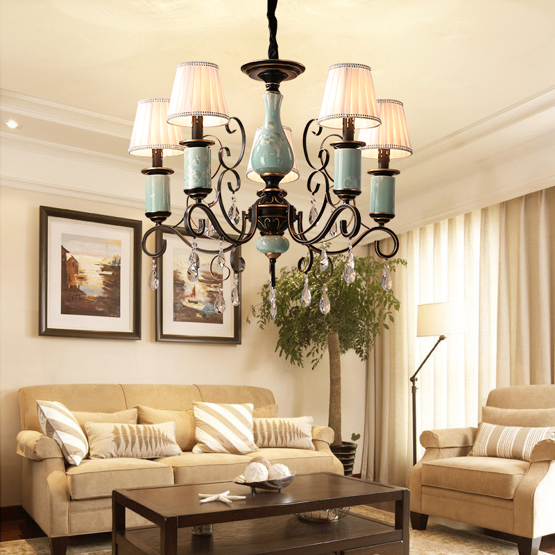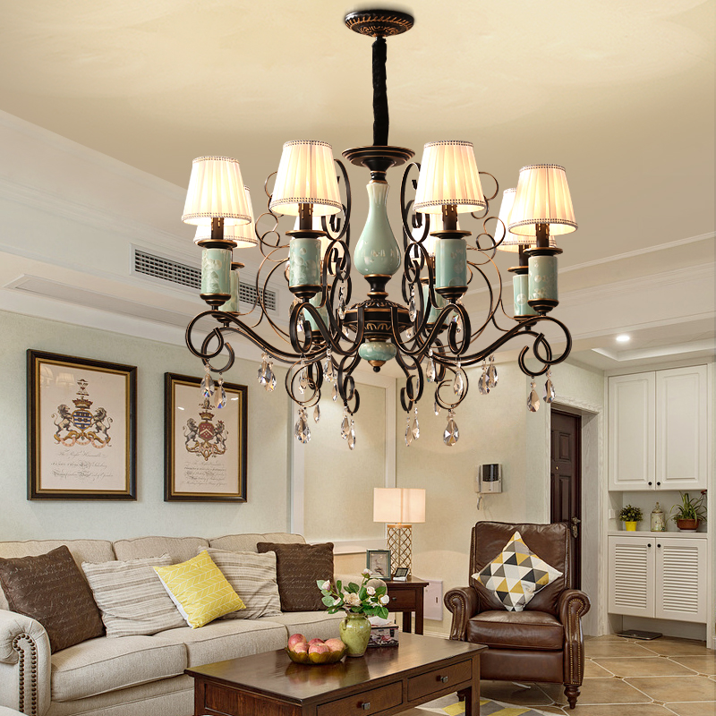 欧式吊灯水晶别墅灯具美式复古创意田园陶瓷卧室书房餐厅客厅吊灯