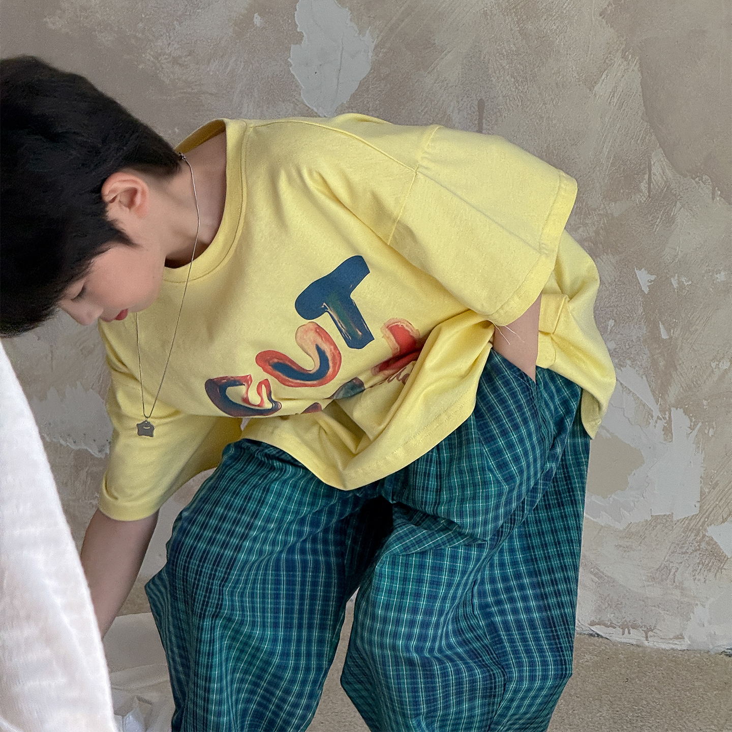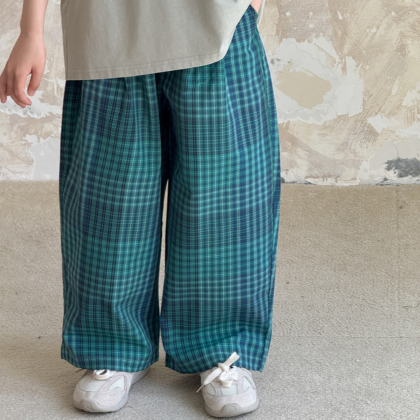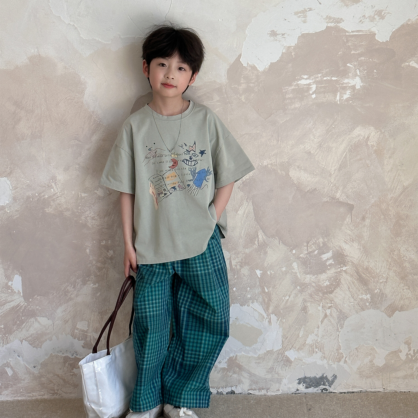 虾酱麻麻男童纯棉裤子薄款夏装2025新款男孩长裤格子儿童装防蚊裤
