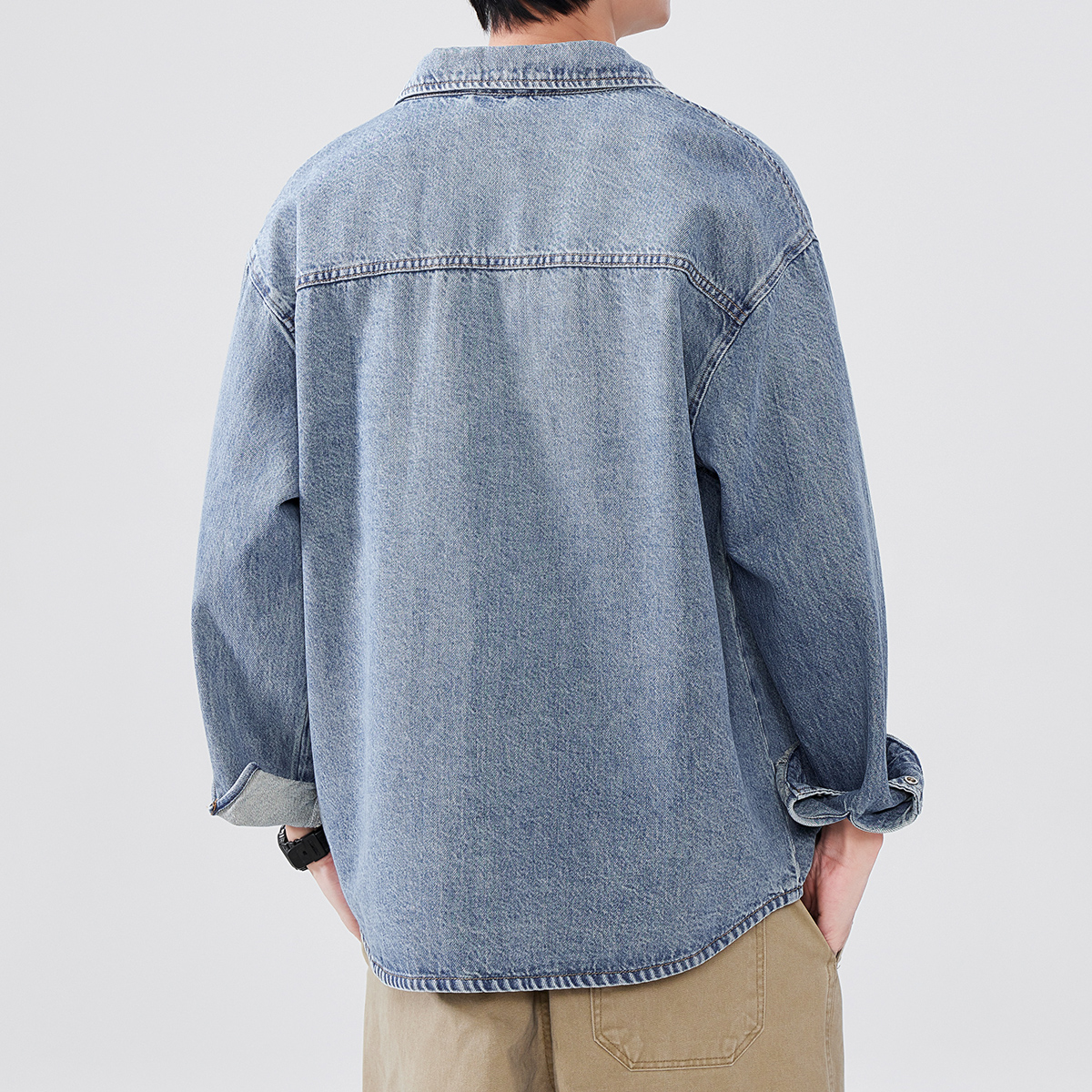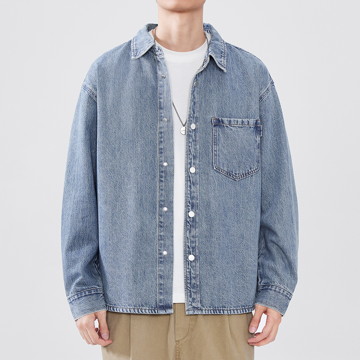 hansca260g重磅莱赛尔天丝牛仔衬衫男2025年春季透气翻领长袖衬衣
