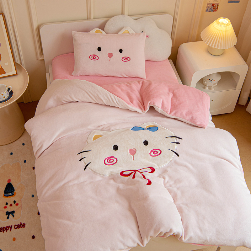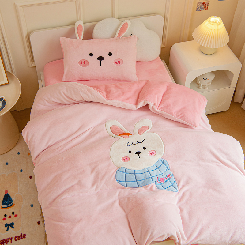 儿童牛奶绒绣花幼儿园被子三件套宝宝入园专用床品午睡被褥六件套