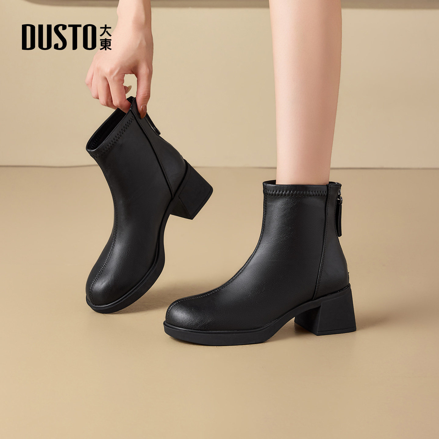 大东官方粗跟切尔西靴子短靴女2025新款冬季巨好看粗跟瘦瘦靴女靴