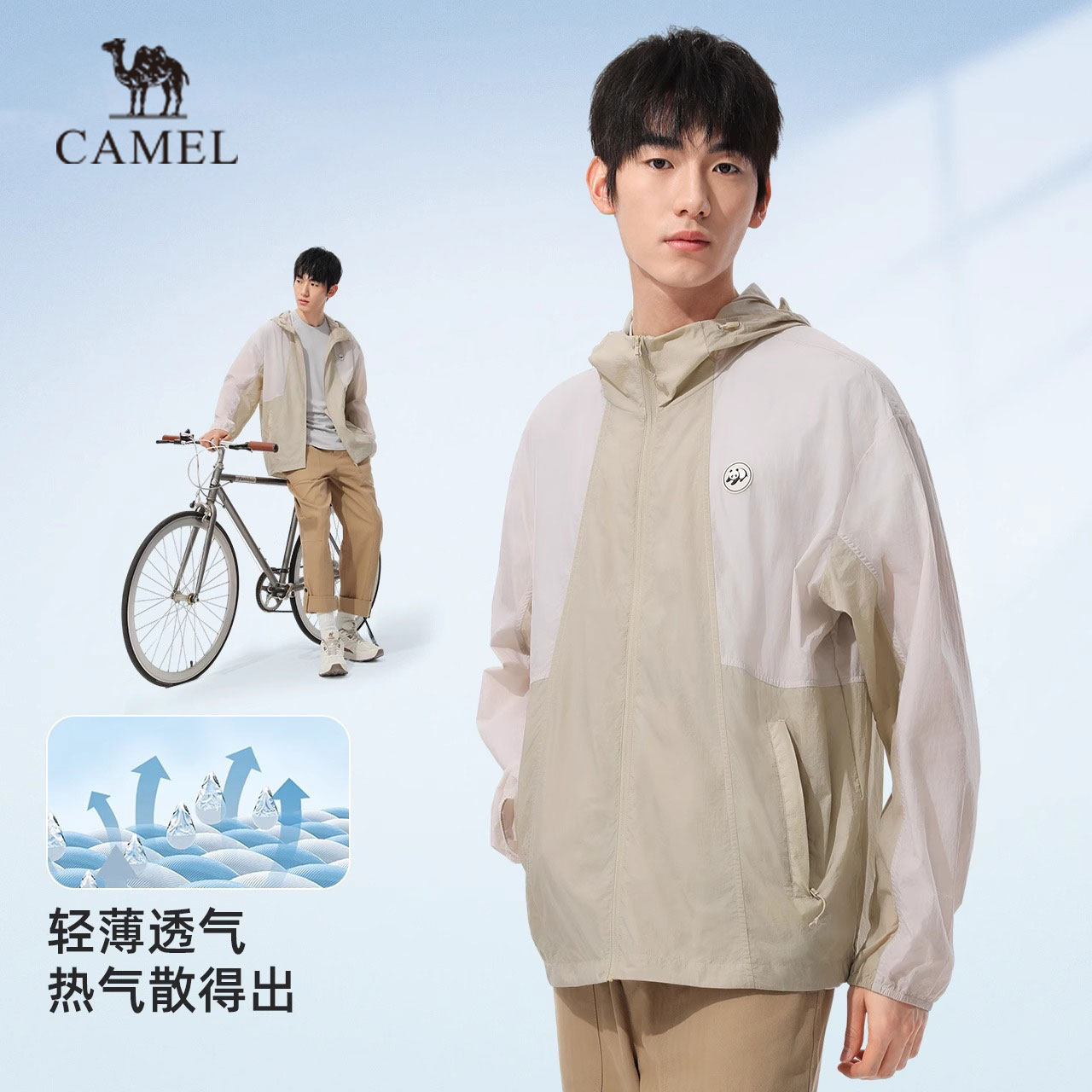 Camel熊猫联名骆驼撞色时尚防晒衣男女春夏新款防紫外线轻薄