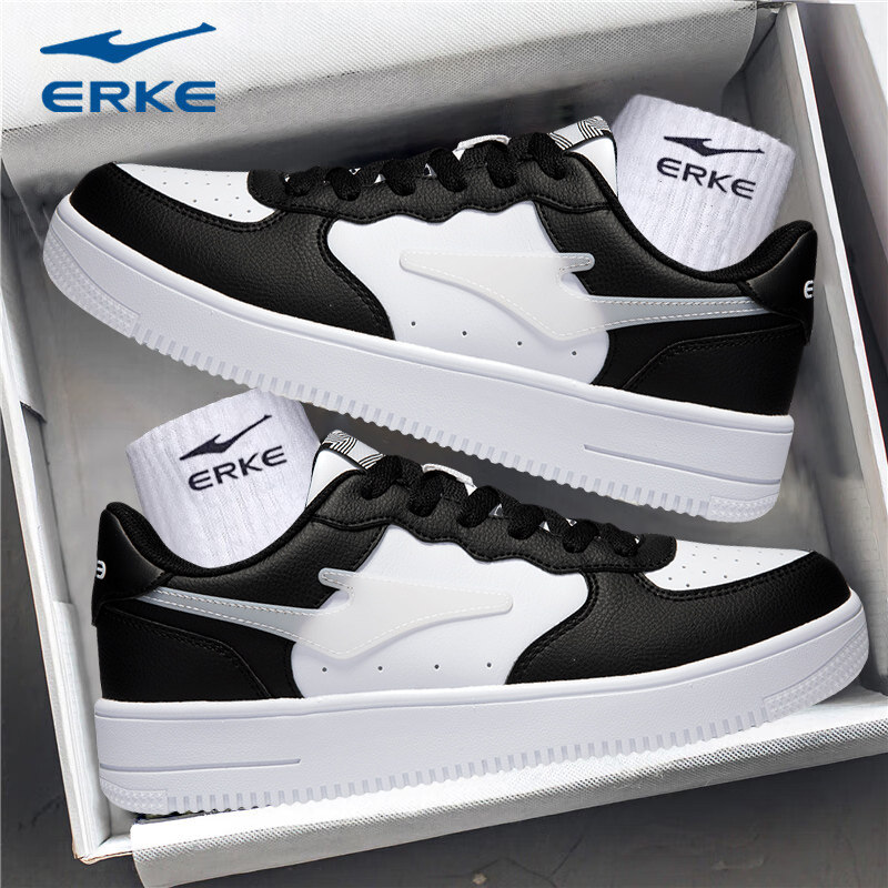 鸿星尔克男鞋板鞋皮面2025新款秋冬白鞋平板鞋子红星旗舰店运动鞋