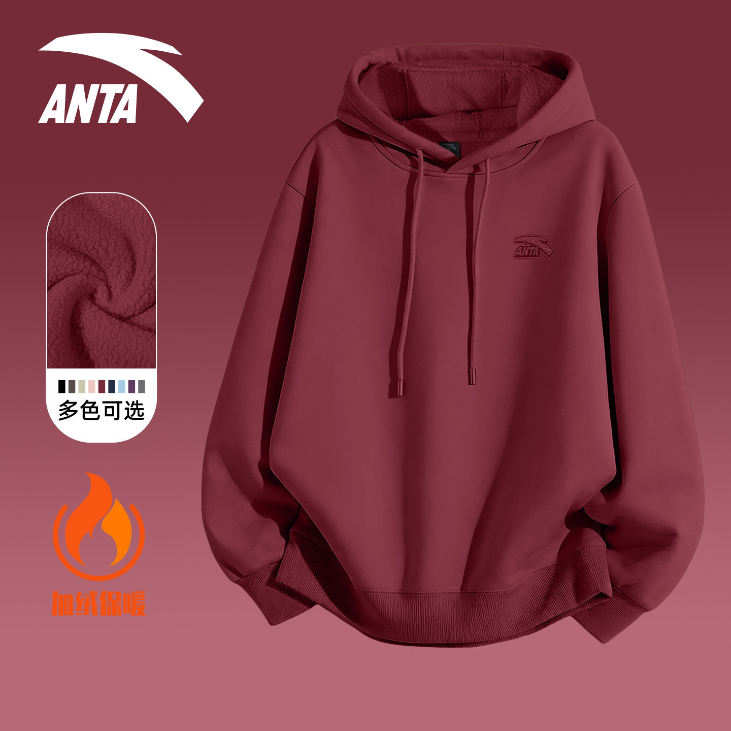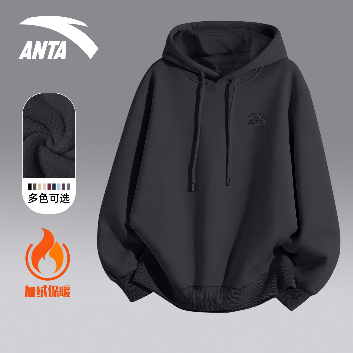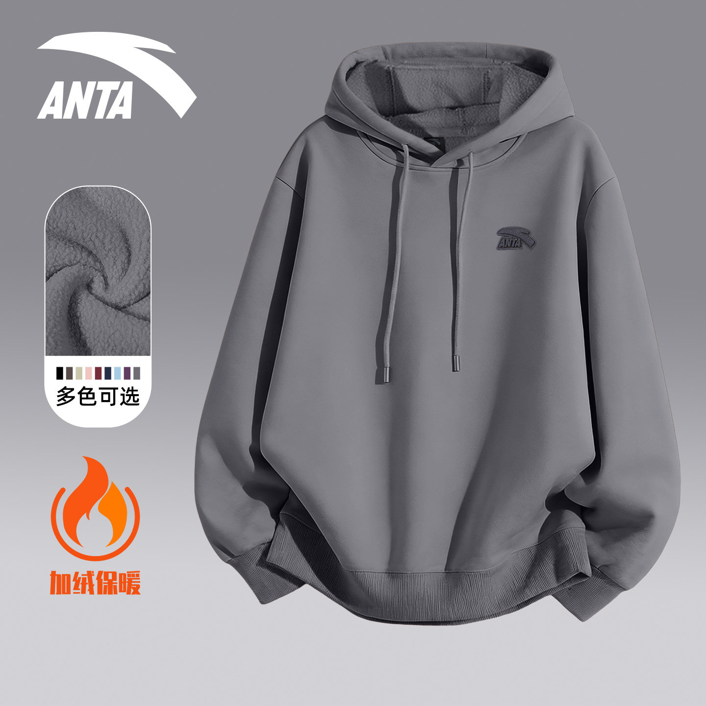 安踏连帽卫衣女款粉色帽衫2025新款冬季加绒加厚宽松大码休闲上衣