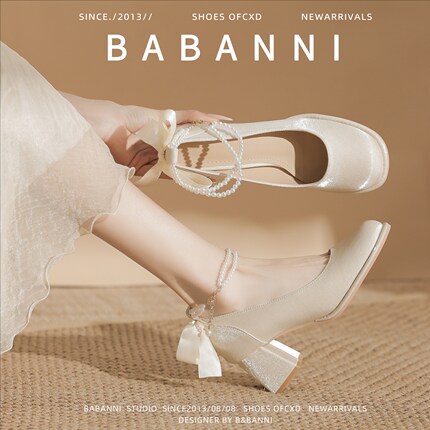 超软~真皮气质法式玛丽珍女鞋白色配旗袍裙绝美仙女风单鞋小皮鞋