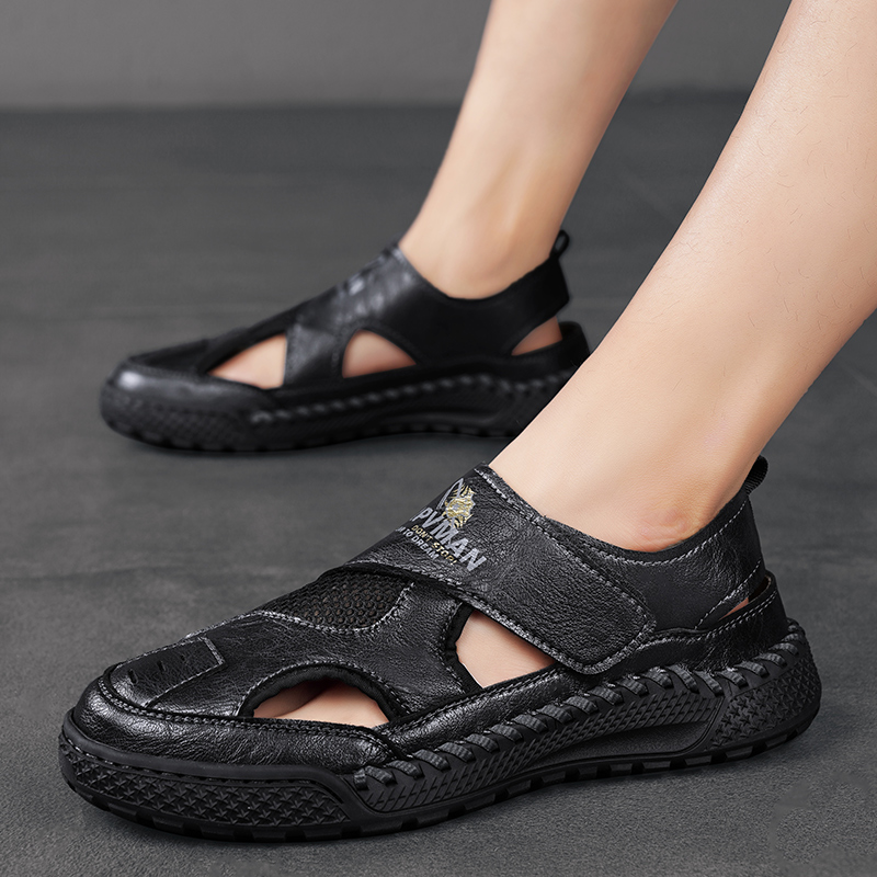 凉鞋男夏季新款潮流男士休闲软底防滑鞋个性潮流百搭真皮大码皮鞋