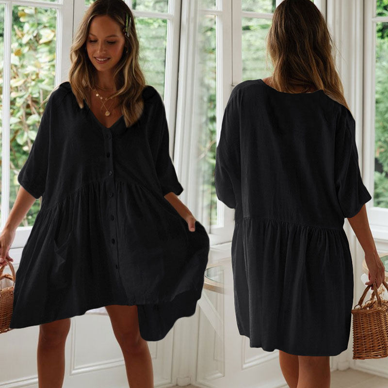 人棉宽松大码防晒衣女海边度假裙沙滩短裙开衫比基尼外搭泳衣罩衫