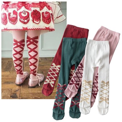 女童日本ST同款绑带蝴蝶结连裤袜公主打底裤袜宝宝洛丽塔甜美袜子