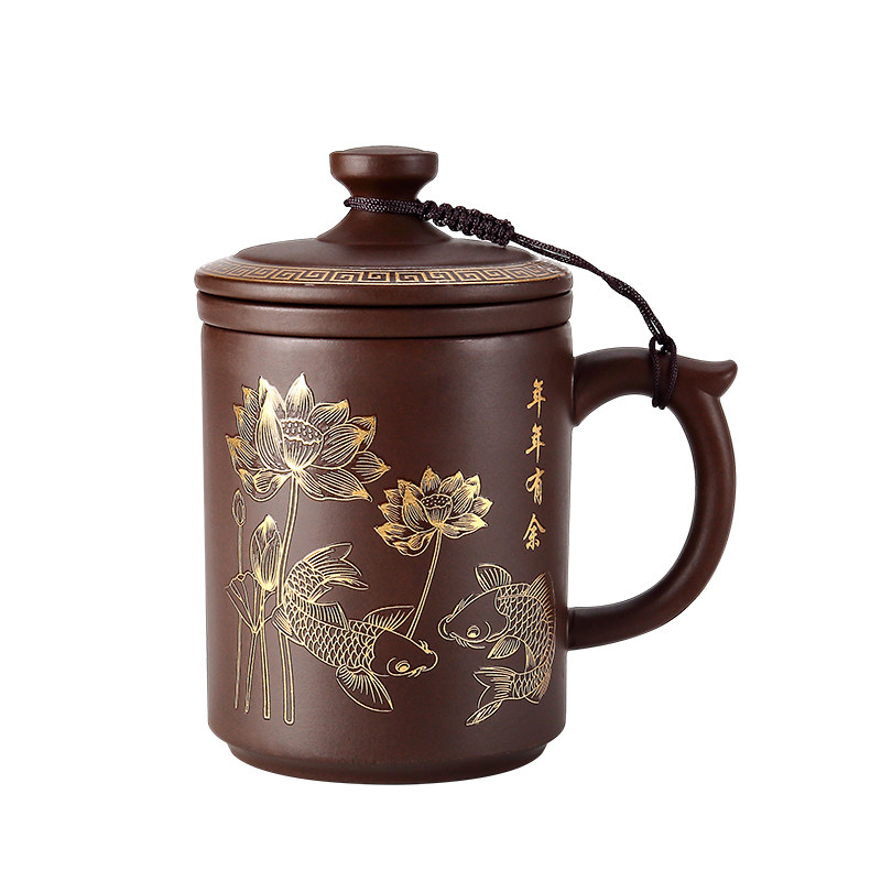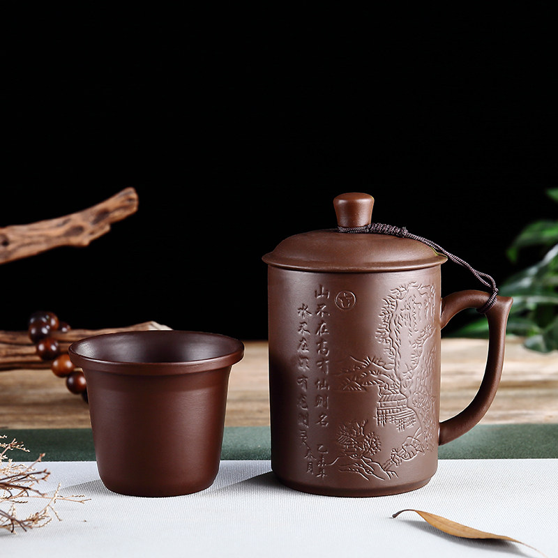 宜兴大容量紫砂杯男士带盖泡茶杯茶具办公室陶瓷家用个人水杯手工