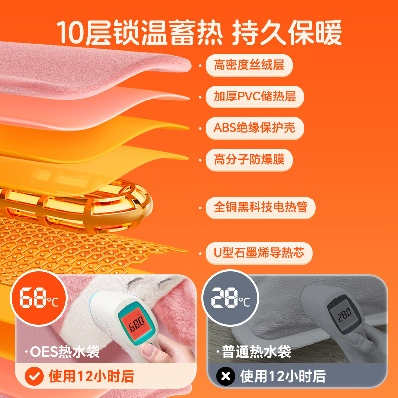 OES热水袋注水暖水袋暖宝宝充电款电热水袋被窝专用2025新款防爆