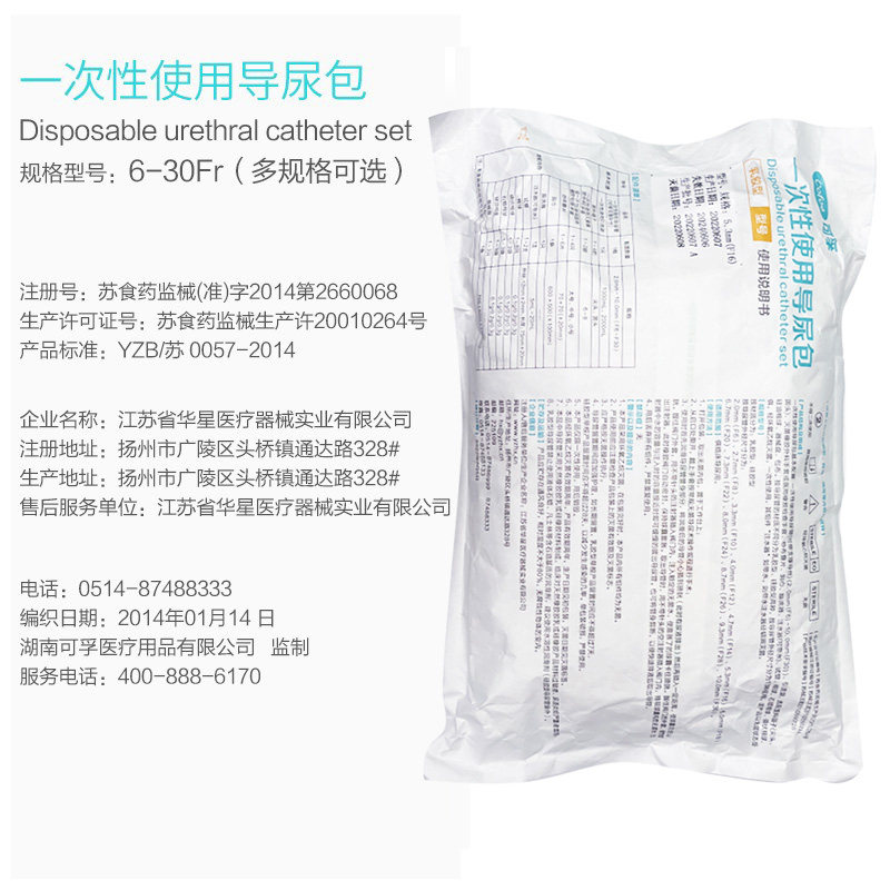 可孚导尿包16Fr医用一次性使用尿袋引流袋男用女用导尿袋成人尿管