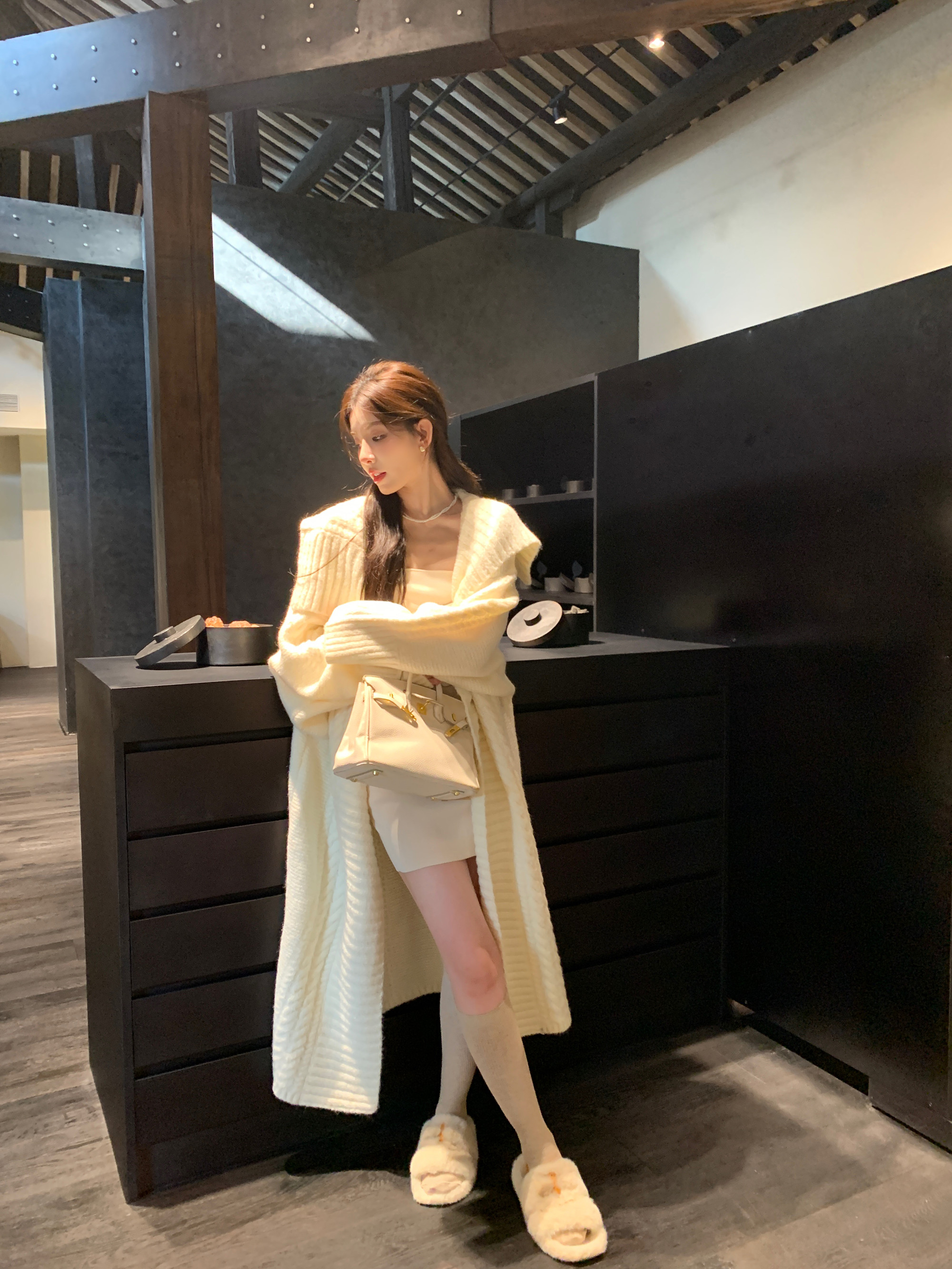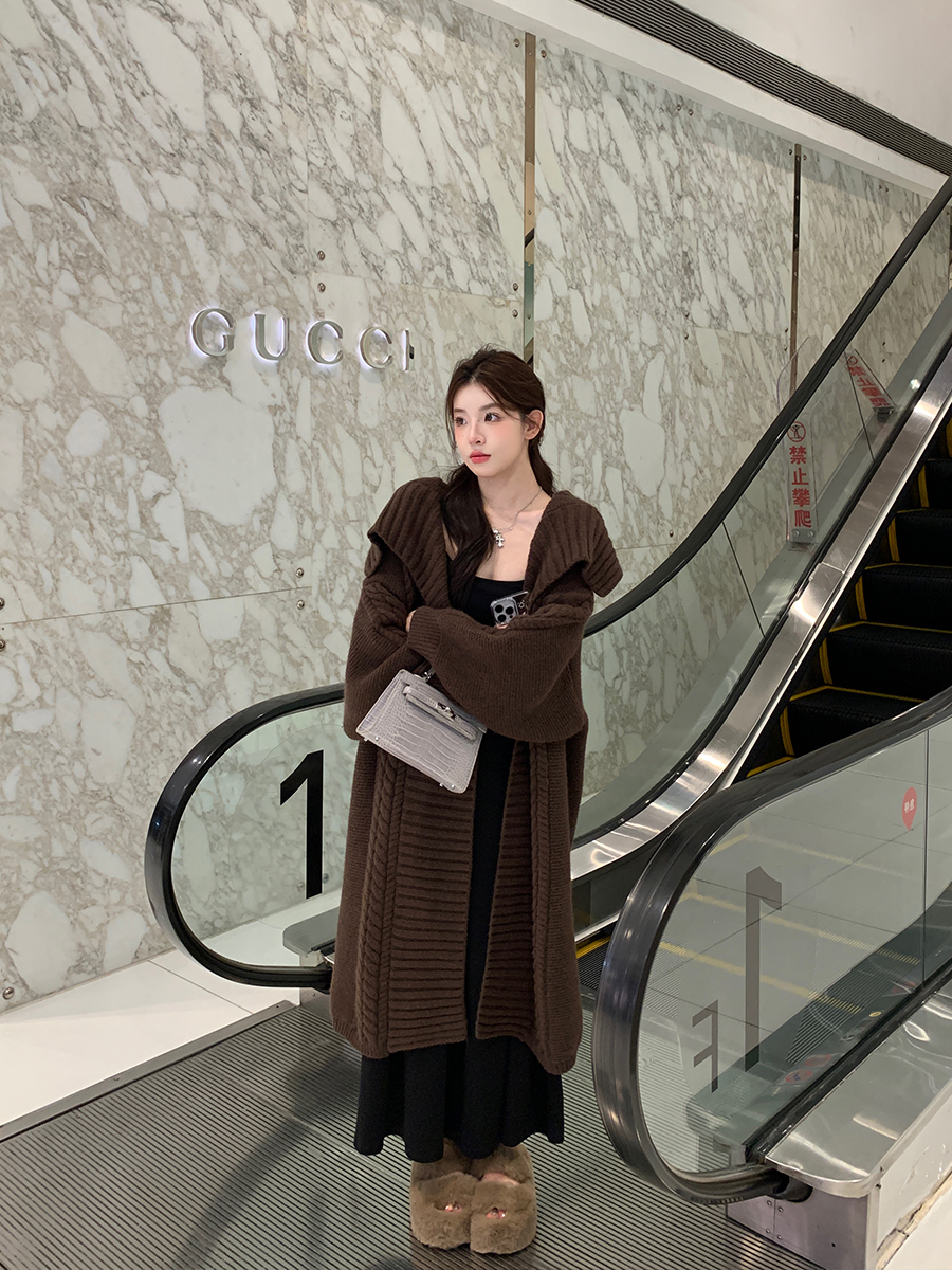 alex stevens大翻领针织开衫女中长款毛衣外套慵懒感软糯气质宽松