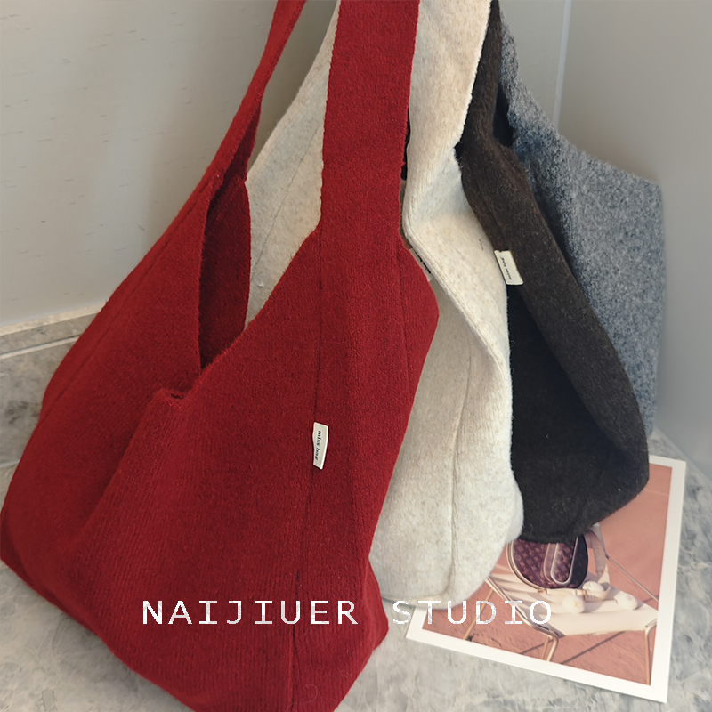 2025新款韩国订单款含羊毛秋冬女包慵懒风托特包通勤大容量单肩包