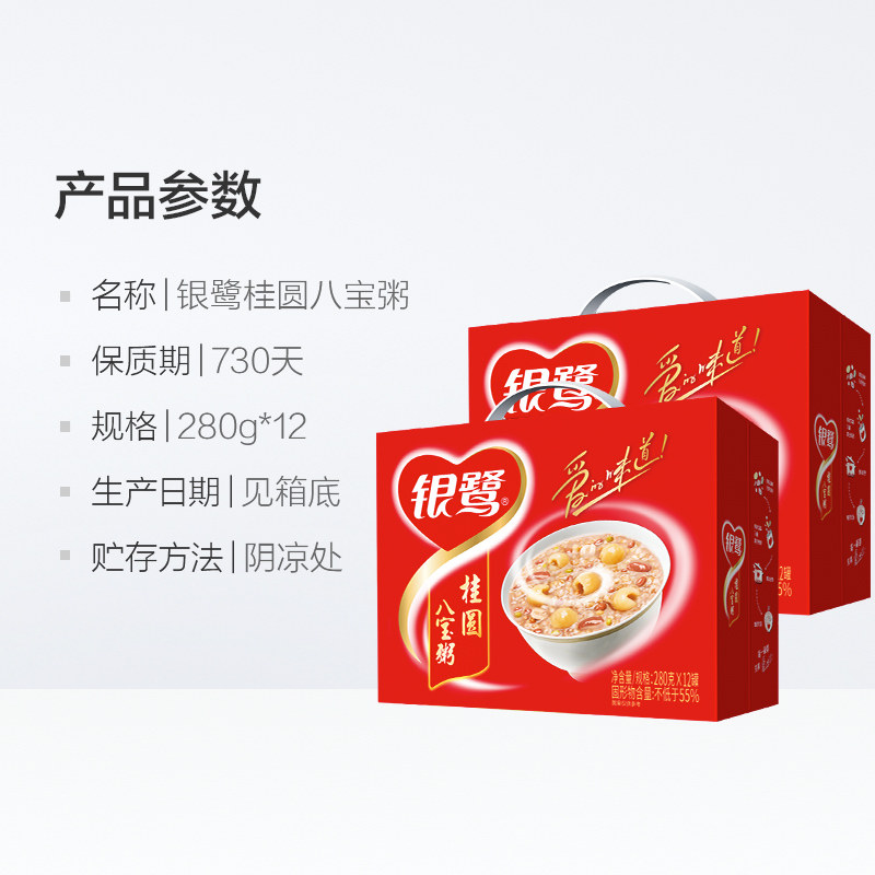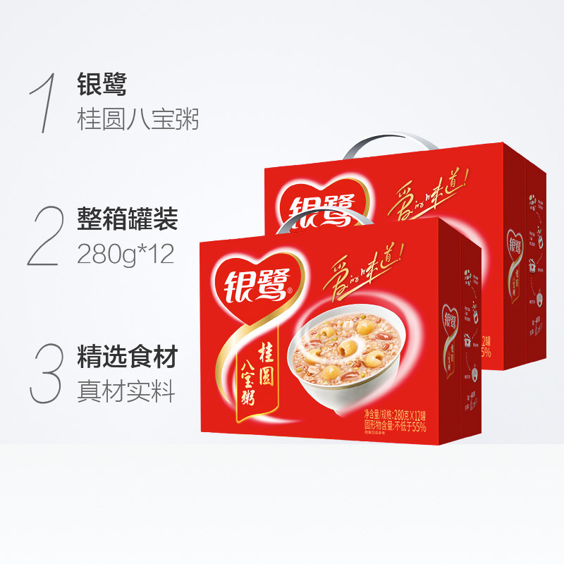 银鹭桂圆八宝粥280g*12罐整箱速食粥盒装速食粥方便早餐日期新鲜