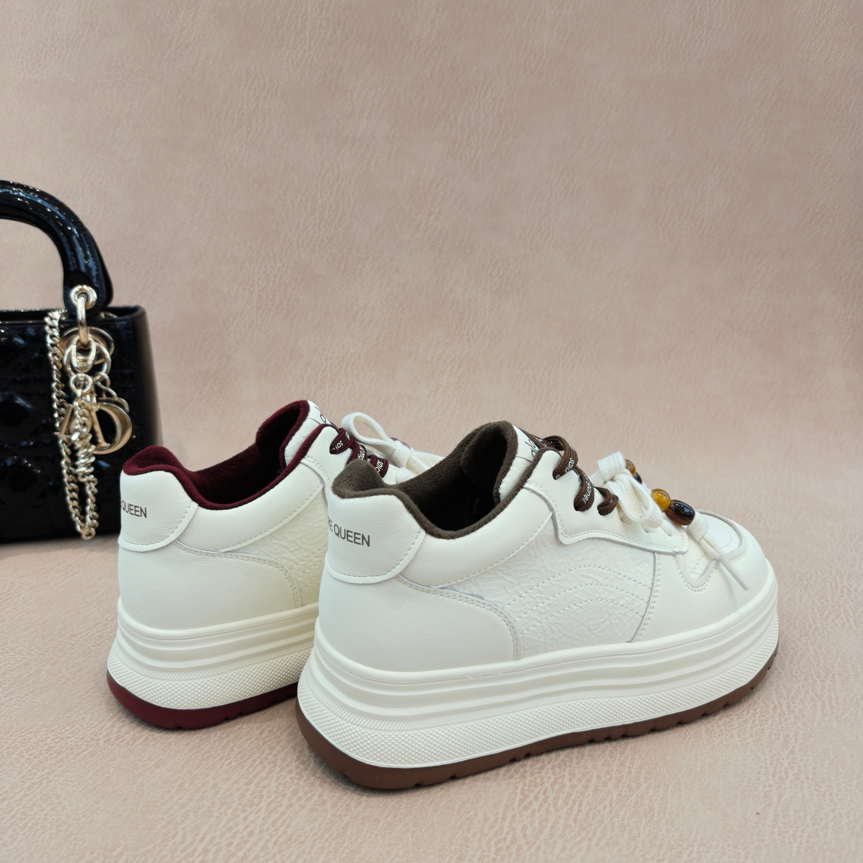 2025冬季新款厚底增高小白鞋女百搭休闲运动板鞋时尚系带面包鞋子