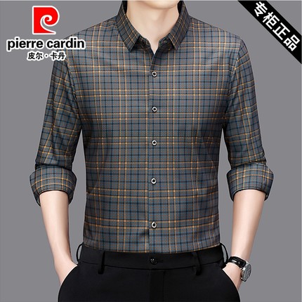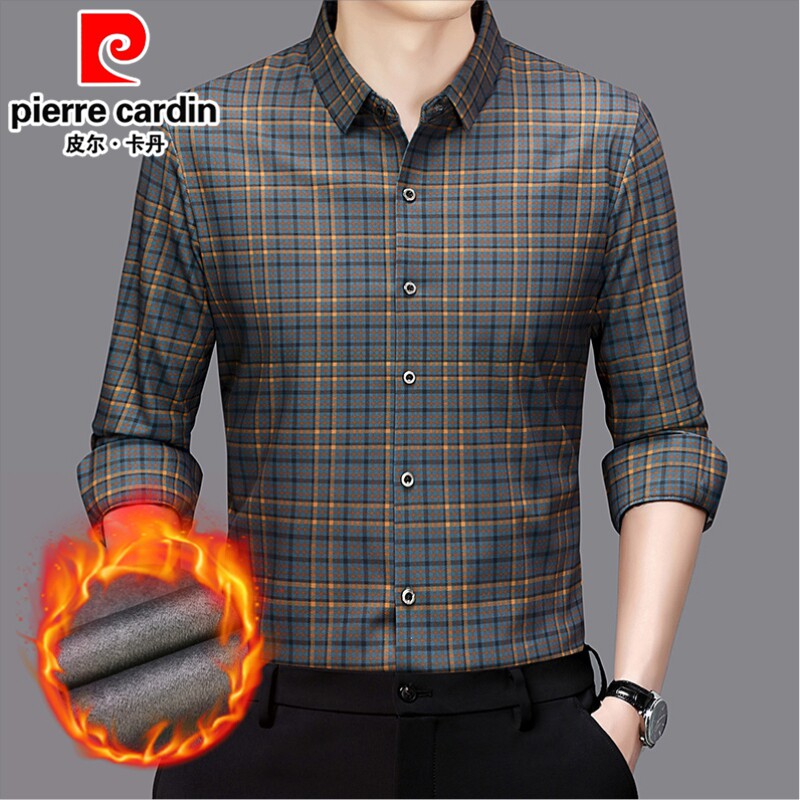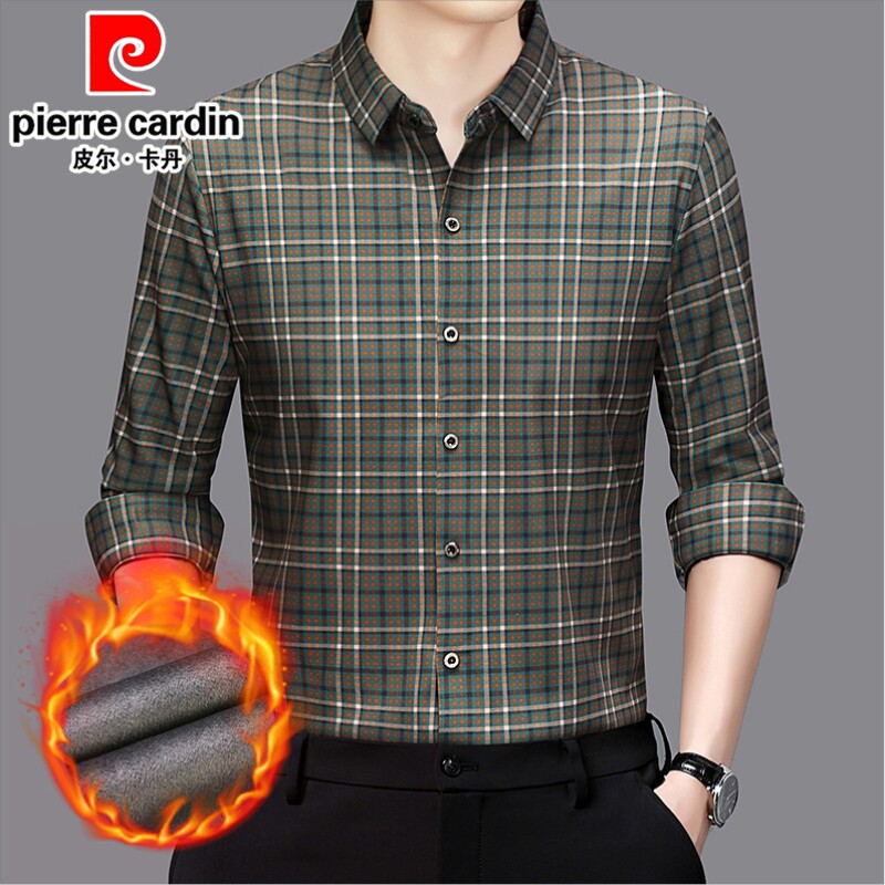 皮尔卡丹男士保暖衬衫2025秋冬新款高端加绒加厚长袖保温格子衬衣